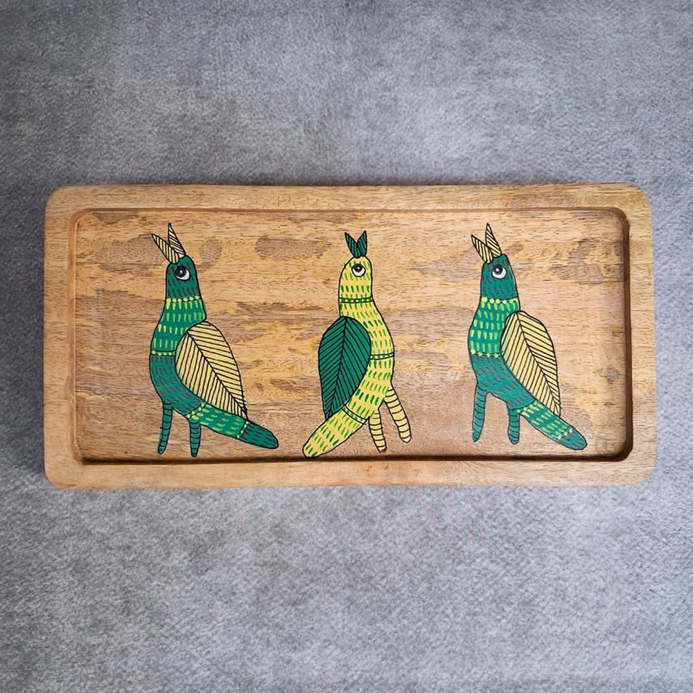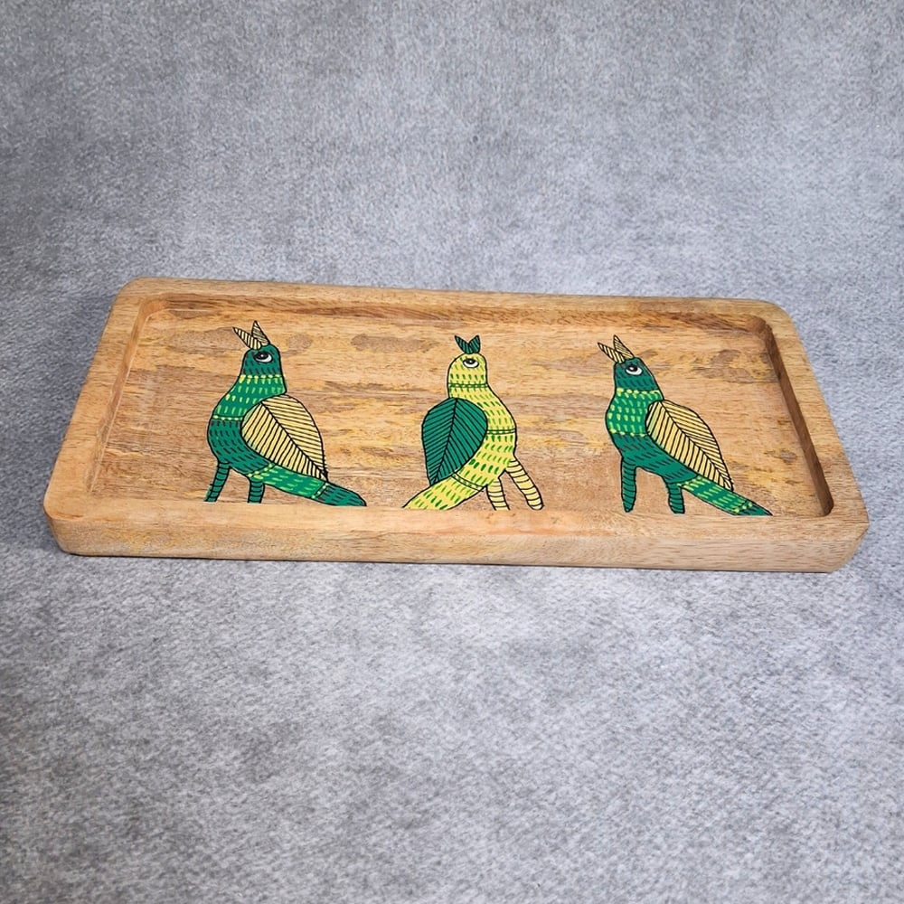 • Handcrafted Mango Wood Birds Hand Painted Serving Tray