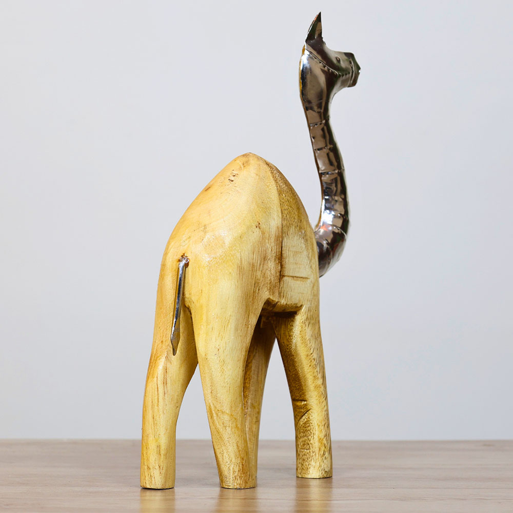 Sculpted from sustainable mango wood and detailed with polished metal head and neck, this camel figurine captures rustic desert charm in a compact, elegant form. The natural finish showcases the woods grain, inviting travellers, boho decorators, and gift seekers to bring a touch of wanderlust and handmade heritage into their spaces. Packed & quality-checked by Indianshelf.