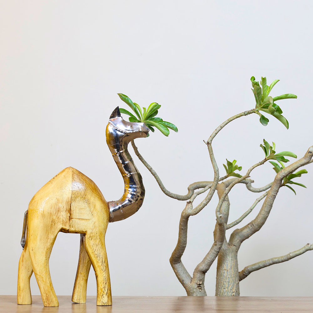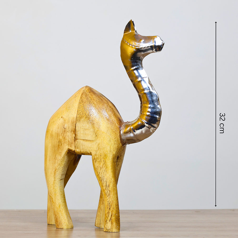 This camel figurines natural wood grain and polished metal detailing convey both authenticity and elegance. Its simple lines and organic finish create a calming presence, inspiring wanderlust and personal reflection. Its a thoughtful addition to travel-themed decor.