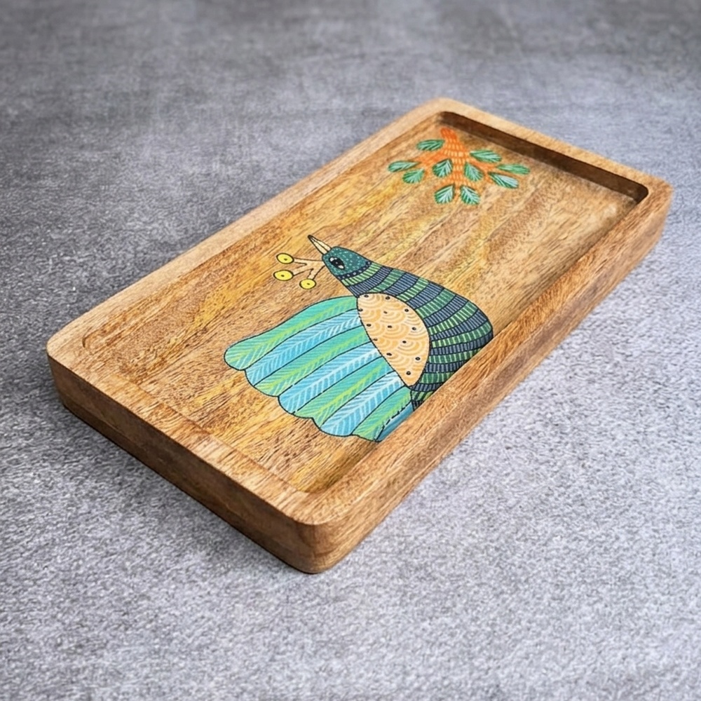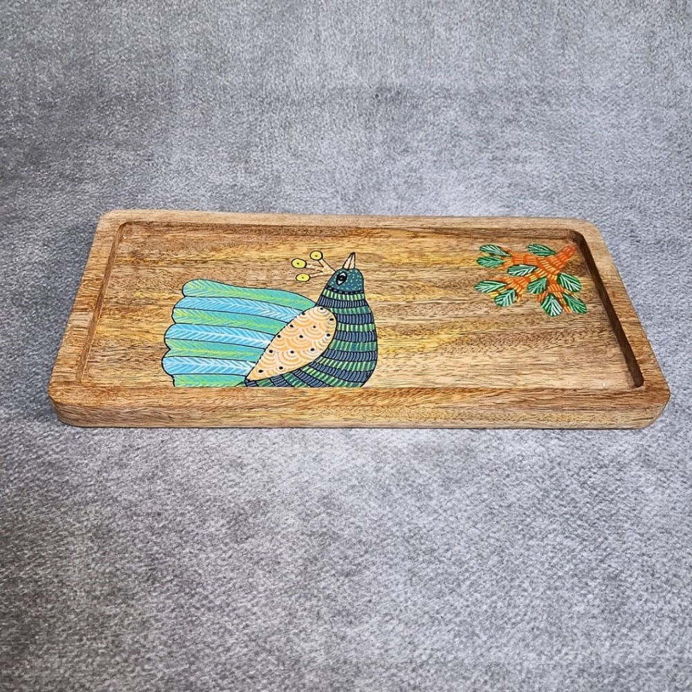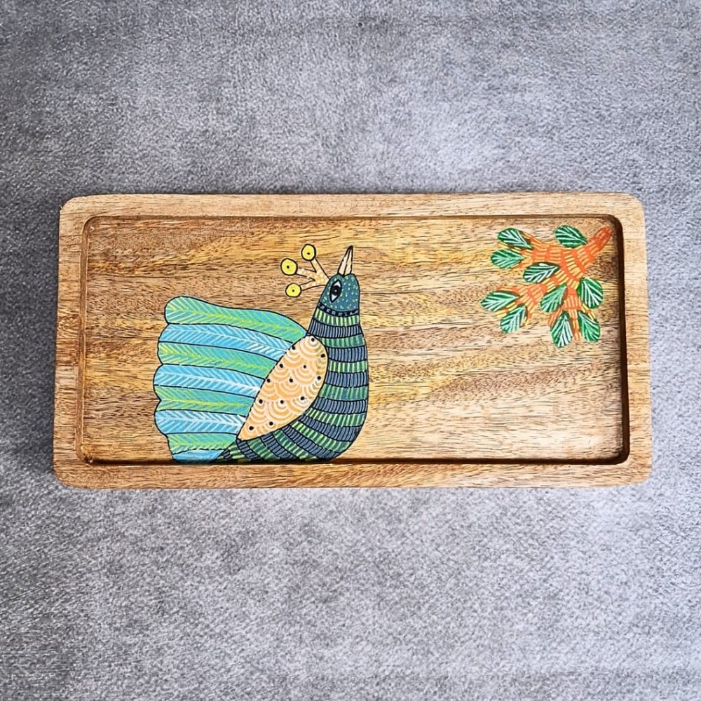 • Handcrafted Mango Wood Peacock Hand Painted Tray