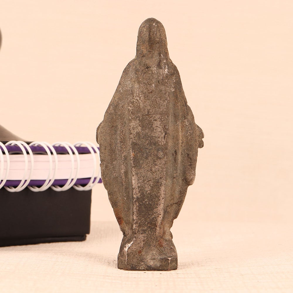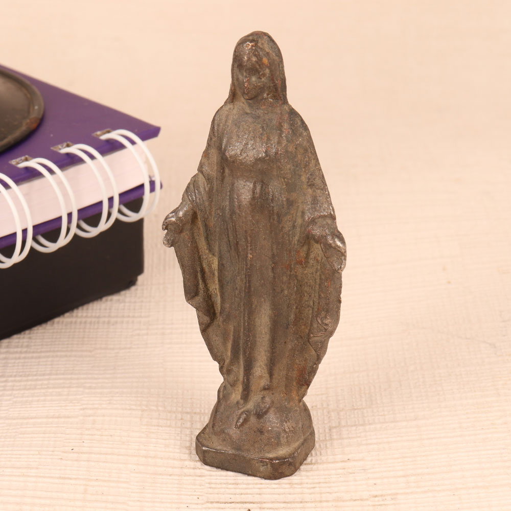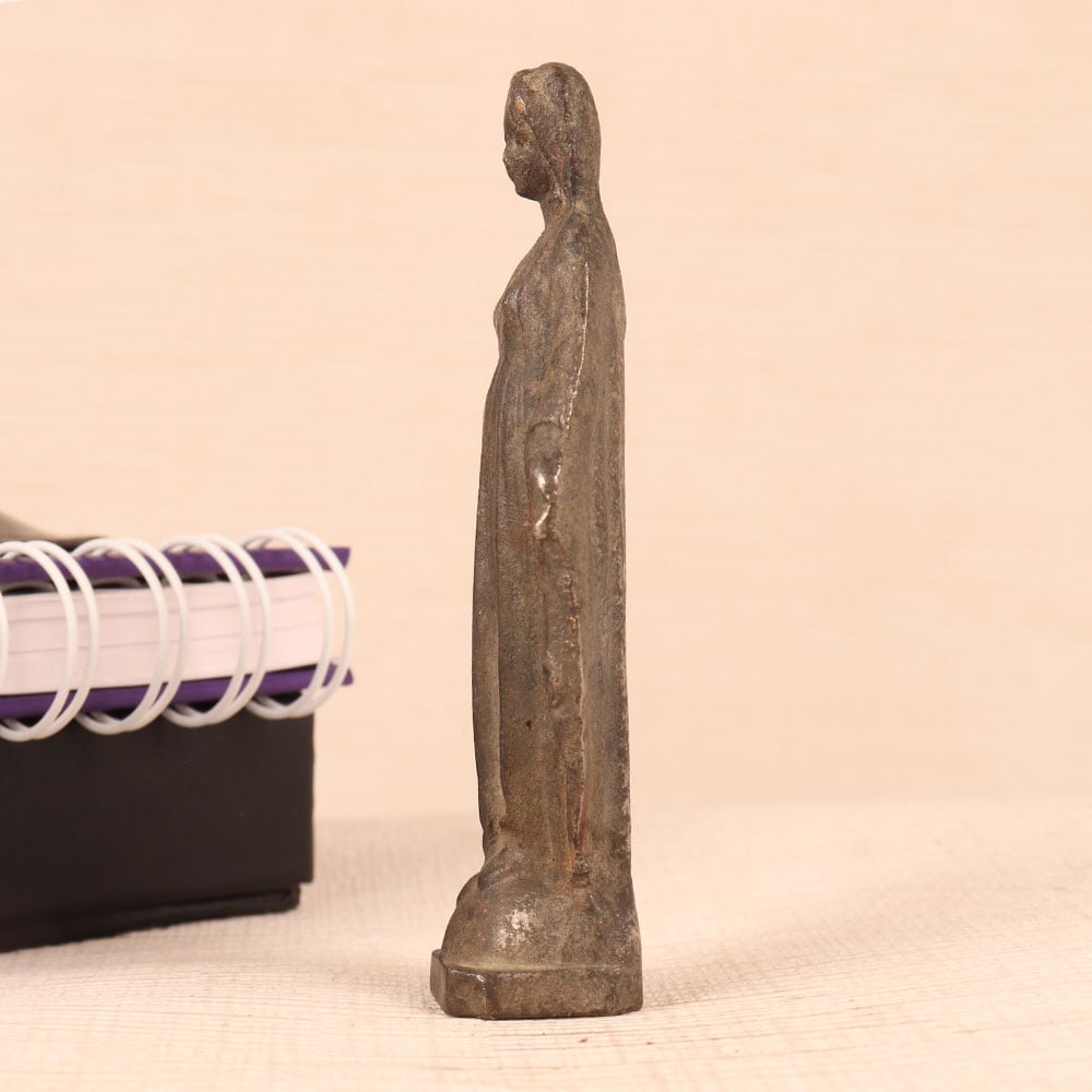 Buy a metal statue of Mother Mary online and get a hassle free delivery at your doorstep. Crafted with unparalleled precision by skilled artisans, this timeless masterpiece showcases the essence of English Art. Standing in graceful repose, the statue of Mother Mary exudes a sense of serenity and grace that is truly captivating. Its antique gray finish lends an air of antiquity, making it a striking addition to any setting. Meticulously handcrafted from high-quality metal, this statue is a testament to the artisan's dedication to perfection. Whether you choose to place it in your home, office, restaurant, hotel, cafe, or shop, this statue will infuse an aura of tranquillity and elegance into the space. Collectors of vintage treasures will find it a prized addition to their collection, and it makes for a thoughtful gift on special, festive, or auspicious occasions.