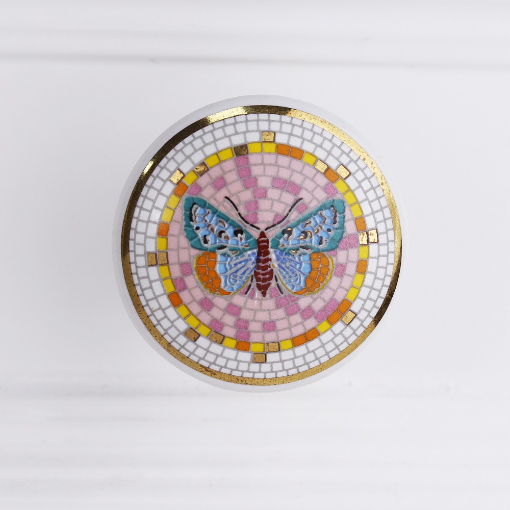 The gold accents are carefully applied to highlight the intricate details of the butterfly design, creating a refined and luxurious look. These metallic touches elevate the overall aesthetic, making this knob a statement piece on any piece of furniture.