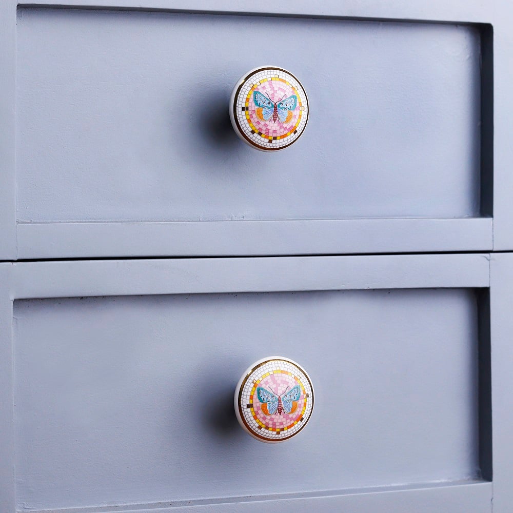 Whether you're revamping a vintage dresser, updating your kitchen cabinets, or adding a touch of elegance to your bedroom furniture, this Handcrafted Multicolor Butterfly Ceramic Furniture Knob is the perfect choice. Its vibrant design suits a variety of furniture pieces and decor styles.