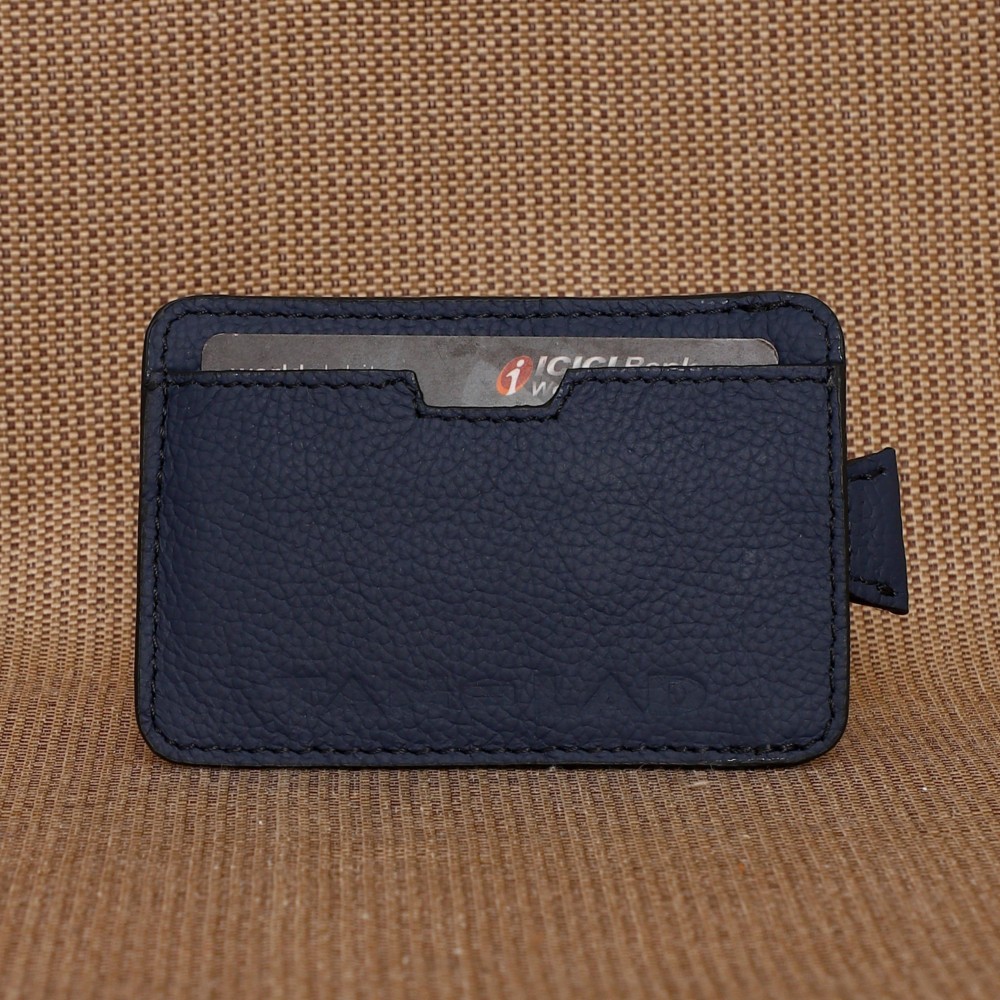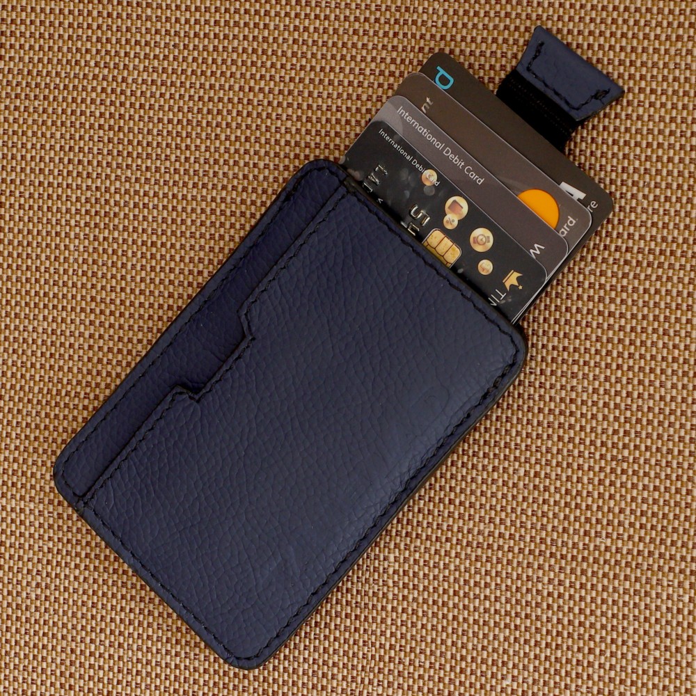 Crafted from lovely Navy leather, It has 1 card slot in the front and another in the back, Kai offers quick access to your most essential cards. It also features a clever pull-tab function, allowing you to easily pull out up to 5 cards from the central compartmentno more fumbling through your wallet!