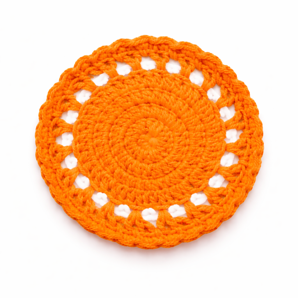 This handcrafted orange crochet doily coaster is made using durable cotton yarn and designed with a detailed round crochet pattern. The bright orange color adds warmth and character to dining tables, coffee tables, and tea setups while highlighting traditional crochet craftsmanship. Functional and decorative, this cotton yarn coaster helps protect surfaces from heat, moisture, and cup marks.