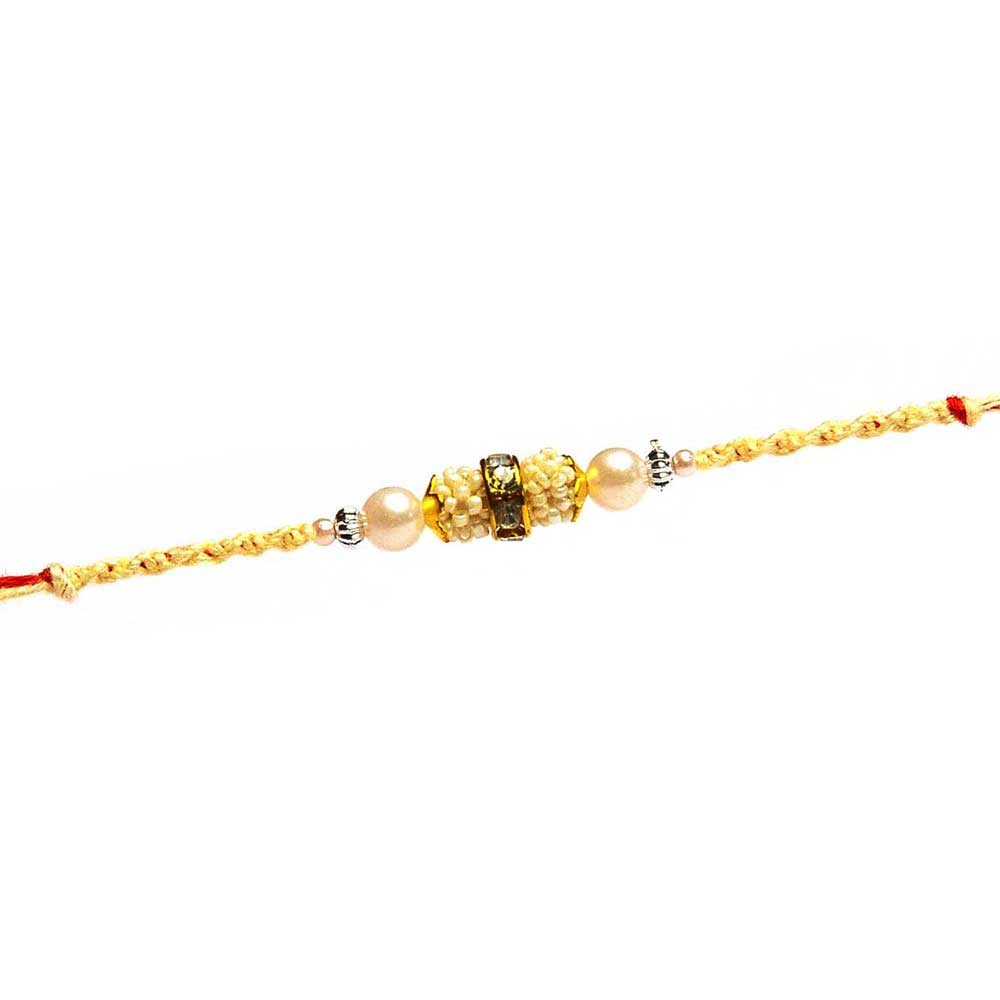 Handcrafted Rakhi with Pearls and Diamonds Beads