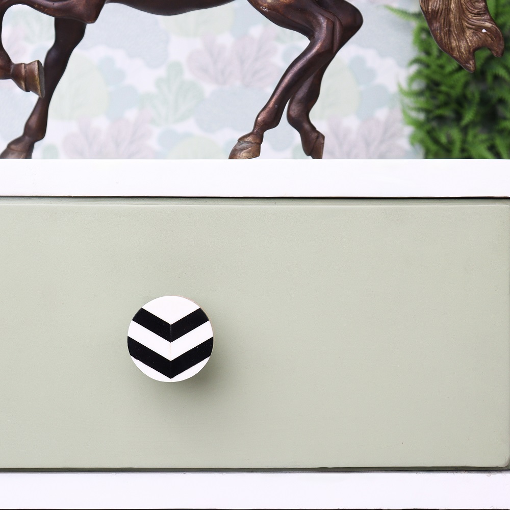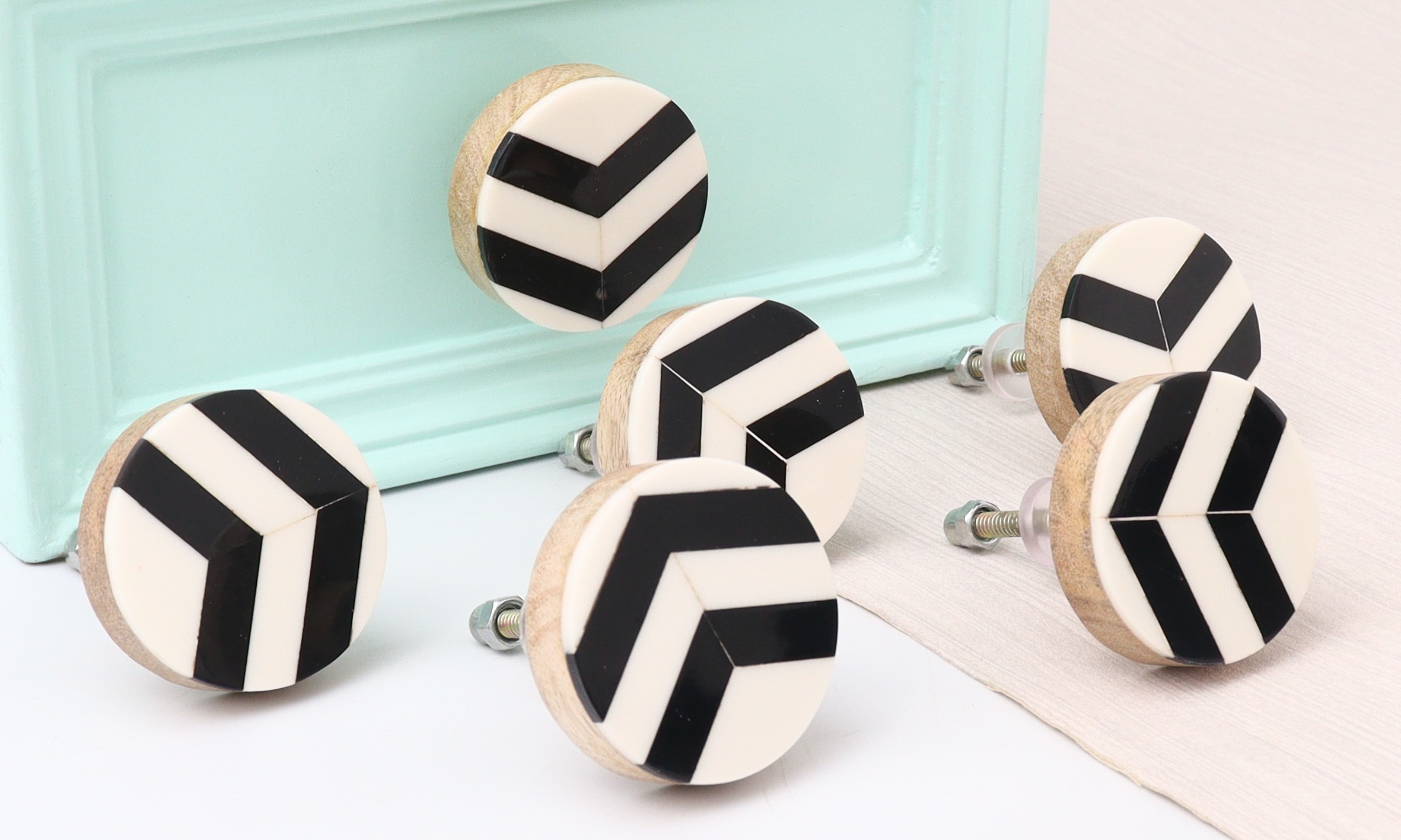 This knob is carefully handcrafted from a blend of wood and resin, ensuring both durability and an artistic flair. The thoughtfully applied contrasting black and white tones create a beautifully balanced design that fits various décor styles—from modern and minimalist to rustic and bohemian.
