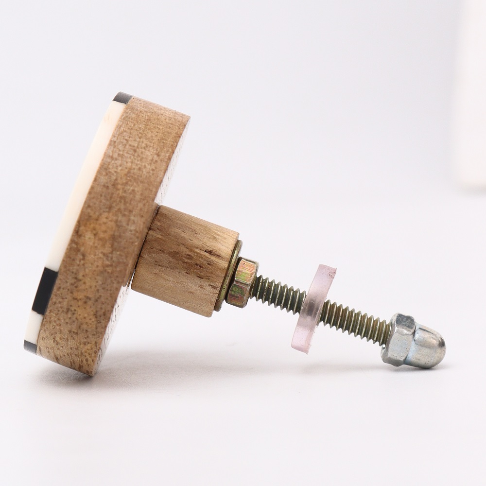 The Handcrafted Round Black and White Wooden Resin Drawer Knob adds a touch of sophistication and artistry to your furniture. Its striking black and white contrast, along with the handcrafted details, makes this knob a perfect combination of functionality and style. It enhances the appearance of cabinets, dressers, and drawers, becoming a standout feature in any space.