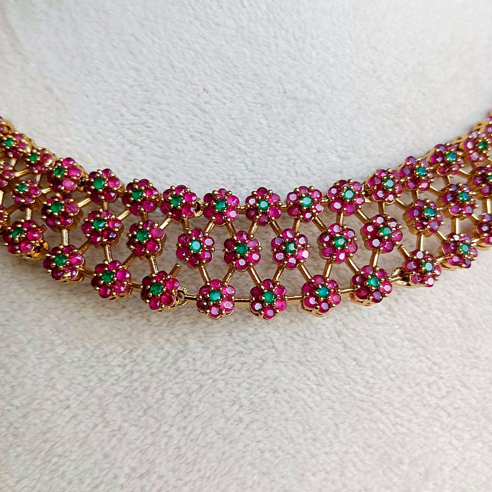 This handcrafted royal coral necklace jewellery set is designed to feel ceremonial, rich, and quietly powerful. The interplay of green and pink tones brings a jewel-like vibrancy, while the brass base anchors the piece in traditional craftsmanship. Flowing across a long 27.56-inch length, the necklace creates an elegant vertical line that flatters both ethnic and fusion attire. It carries the presence of royal ornamentation without excess.