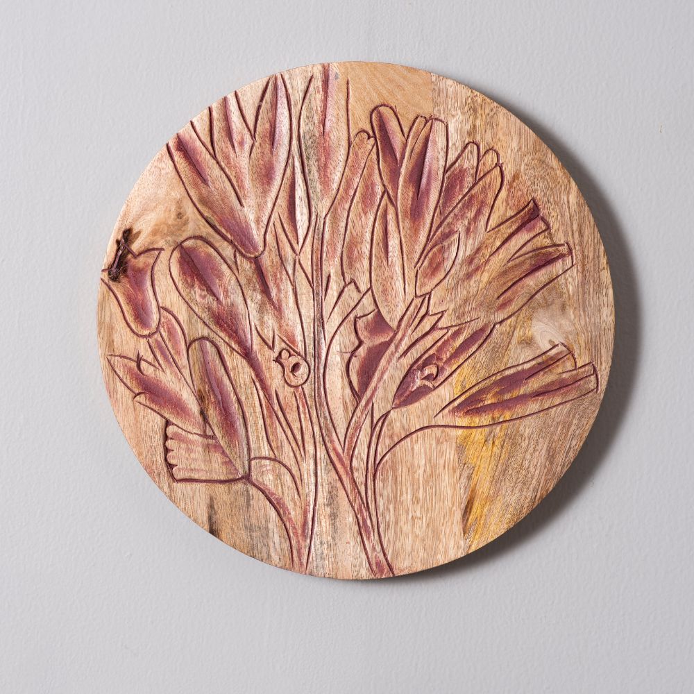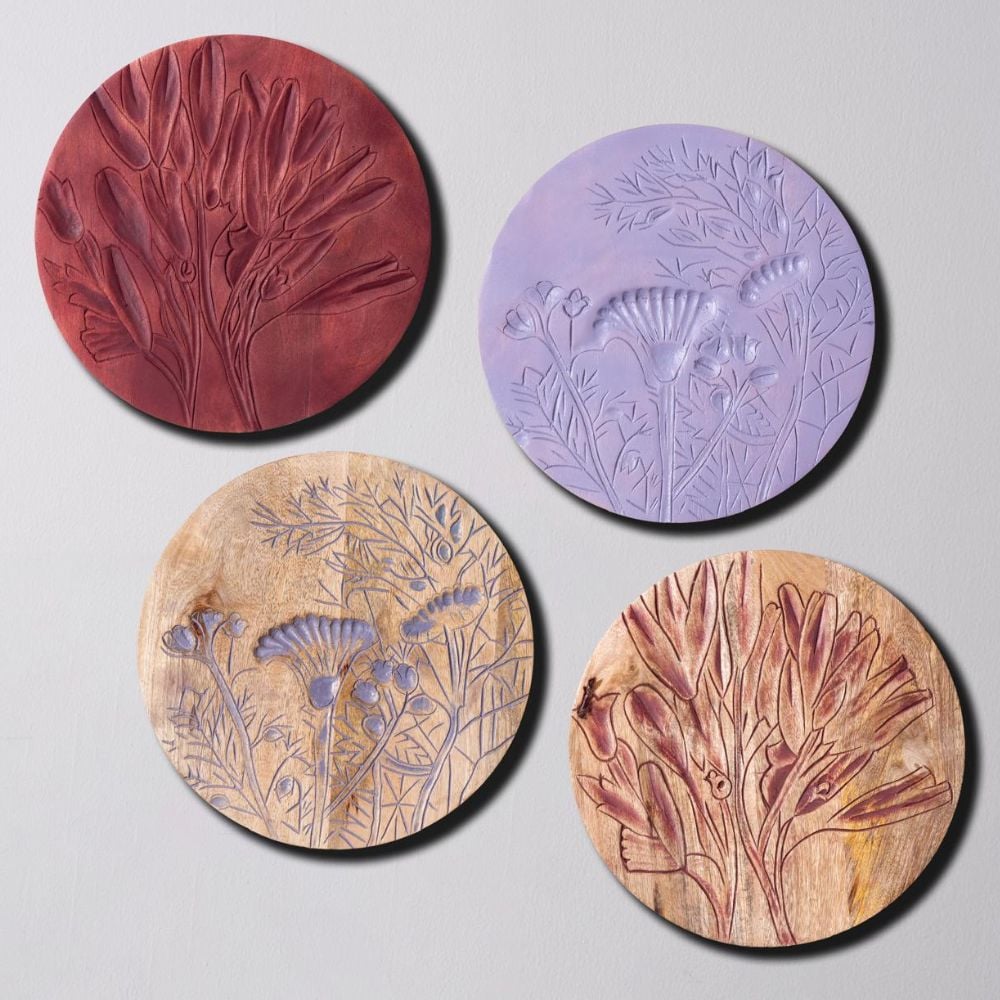 Add a rustic yet artistic charm to your walls with this set of 4 handcrafted wooden wall plates featuring bold floral engravings. With two plates in deep red and two in soft lavender, this collection blends earthy warmth with soothing pastels, making it perfect for contemporary and traditional interiors. Packed & quality-checked by Indianshelf.