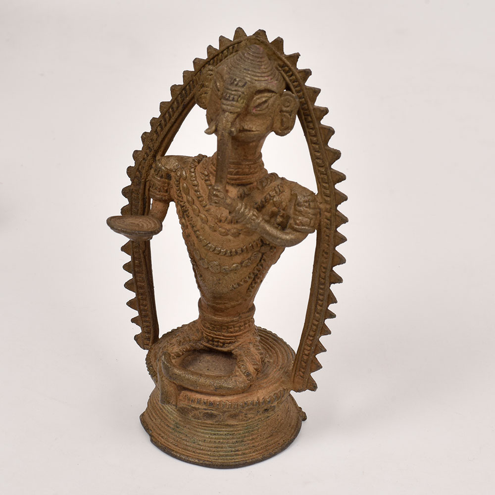 Infuse your home with the blessings and protection of Lord Ganesha through this stunning brass statue. Meticulously crafted by skilled artisans, this piece embodies the divine essence of the revered elephant-headed deity. The intricate detailing, from the ornate headdress to the elegantly posed limbs, showcases the remarkable artistry of Odisha's tribal traditions. Whether placed on a mantel, side table, or altar, this brass Ganesha statue will elevate the energy of any space. Its solid construction ensures it will withstand the test of time, becoming a cherished heirloom to be passed down through generations. Invite the wisdom, prosperity, and good fortune associated with Lord Ganesha into your life and create a sacred sanctuary in your home.