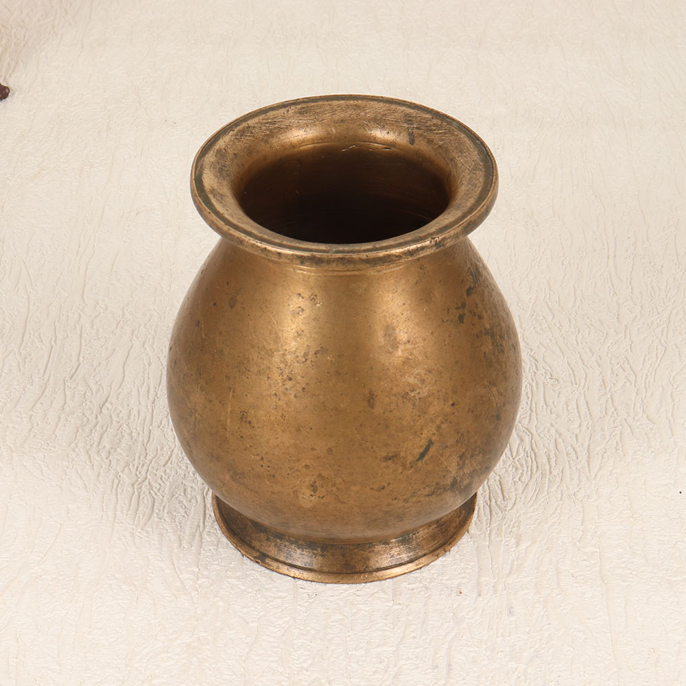 This Vintage Brass Holy Water Pot is a masterpiece handcrafted by talented Indian artisans from South India. Made with meticulous attention to detail, this exquisite piece is crafted from high-quality brass, ensuring durability and authenticity. The antique brown finish adds a touch of antiquity, making it not just a ritualistic tool but also a captivating decor item. This holy water pot has a versatile purpose, serving during rituals, havans, and temple ceremonies, where it is traditionally used to offer water to the revered Shivling. Its sacred significance is seamlessly blended with aesthetic appeal, making it a perfect addition to your home, office, restaurant, hotel, or cafe for decorative purposes. The pot is not just an item of religious reverence but also a timeless addition to any vintage collection. Whether you seek a meaningful piece for your spiritual practices or desire an exquisite decor item, this Vintage Brass Holy Water Pot fulfills both purposes. Additionally, it makes for a thoughtful and cherished gift for your loved ones on special, festive, or auspicious occasions, adding a touch of tradition and grace to their lives.