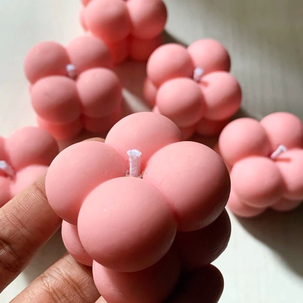• Handcrafted Soy Wax Pink Bubble Candle Set of 4