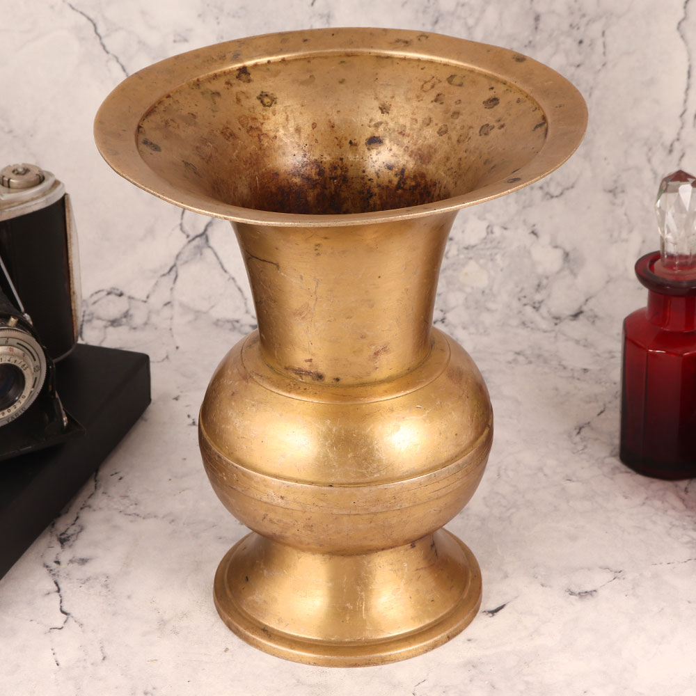 Buy a Vintage Brass Flower Pot online that is meticulously handcrafted by highly talented Indian artisans in the revered tradition of South Indian Art. With its antique brown finish and timeless design, this piece exudes a rustic charm that effortlessly blends with any setting. Crafted from high-quality brass, this flower pot not only serves as a striking decorative element but also doubles as a functional vessel for your favourite blooms. Its durable construction ensures that it will be a cherished addition to your space for years to come. Whether adorning your home, office, restaurant, hotel, cafe, or shop, this vintage brass flower pot adds a touch of elegance and heritage to your surroundings. Collectors will appreciate its unique blend of artistry and history, making it a coveted addition to vintage collections. Celebrate special, festive, or auspicious occasions by gifting this brass flower pot to your loved ones. It carries with it the legacy of skilled craftsmanship and the warmth of Indian culture, making it a thoughtful and meaningful present that will be treasured for generations.