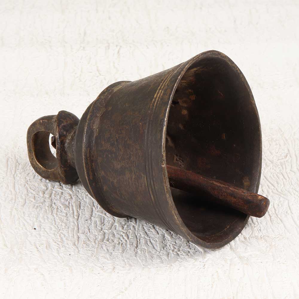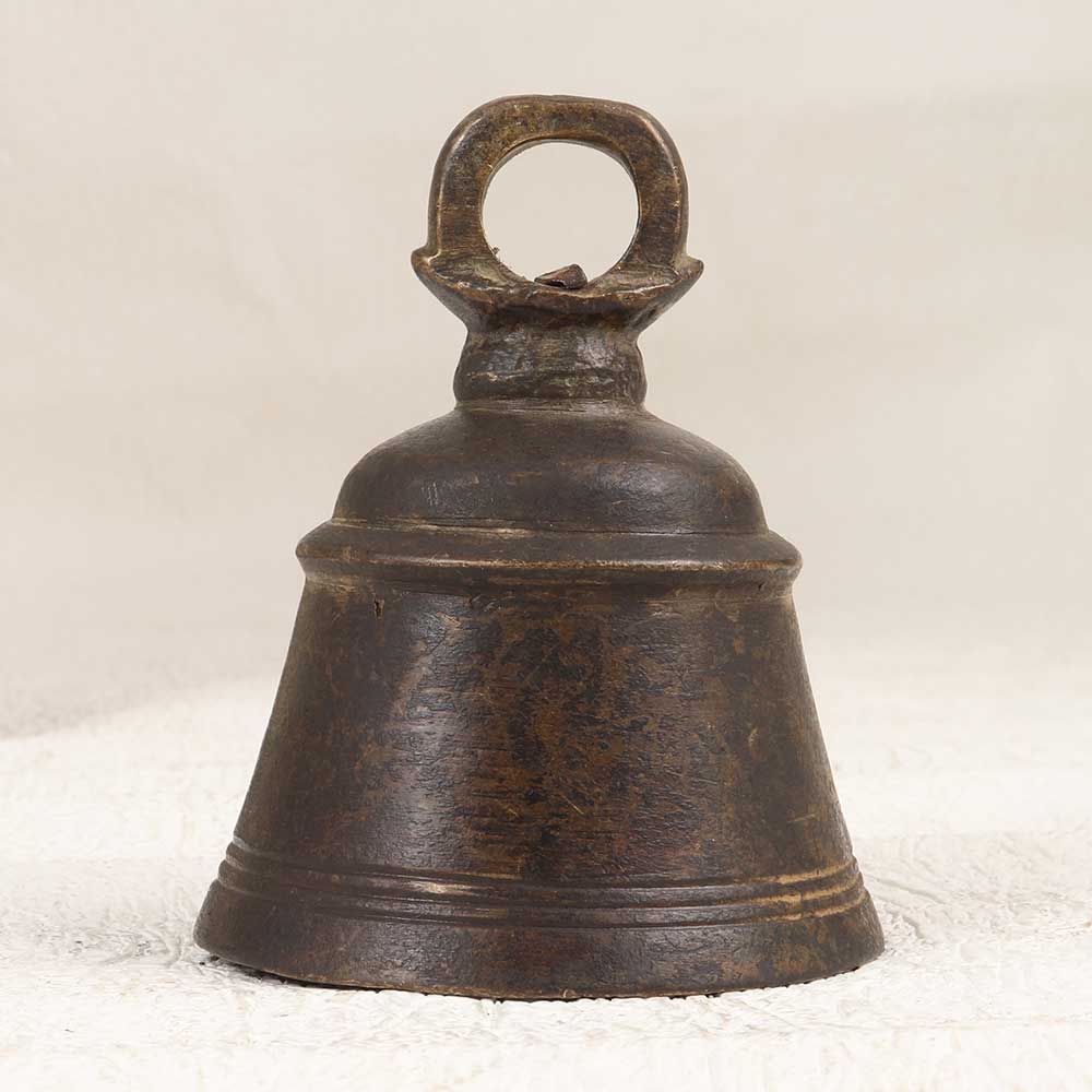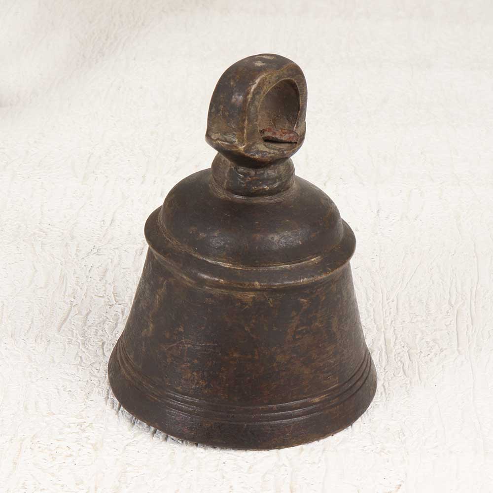Transport your meditation space with the soothing ring of this vintage bell metal temple bell. Allow the resonant tone to call you into present-moment awareness. With each ring, feel stresses and worries wash away as you become immersed in the here and now. This bell's clean design and rich, mellifluous tone enhance any meditation practice. Created by skilled artisans in Himachal, this bell carries the legacy of ancient techniques. The special bell metal alloy produces a long, lingering tone to savor. Let this bell fill your home with peaceful vibrations. It's ideal for yoga studios, meditation spaces, or personal altars. Feel your busy mind quiet as you open up to the tranquil sound. This beautifully simple design features: