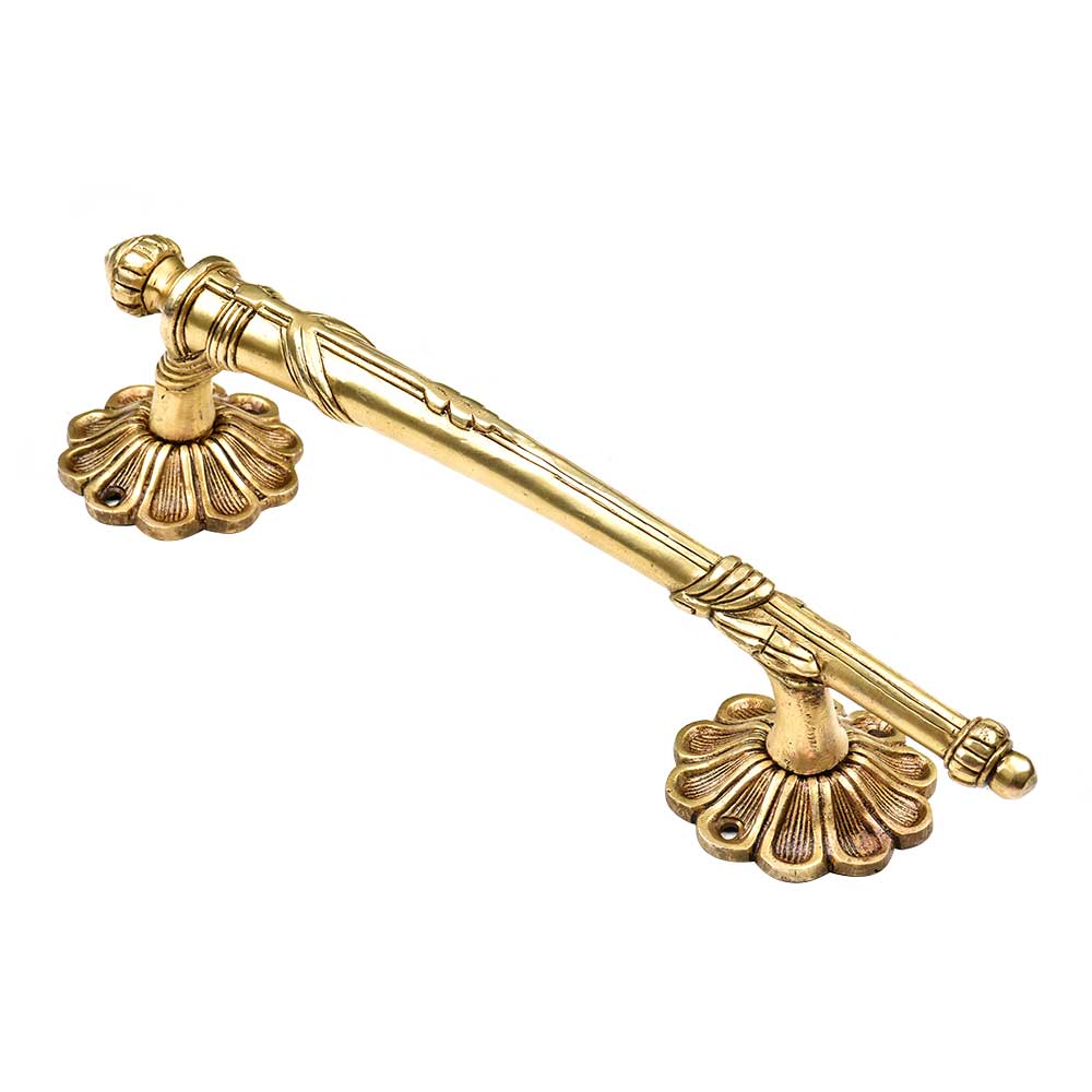 Indianshelf.com for bulk/wholesale orders.Indianshelf.us for personal purchases.This Handcrafted Traditional Indian Carved Brass Door Pull or Handle is a timeless piece that brings the beauty and intricate artistry of traditional Indian craftsmanship into your home. Made from high-quality brass, each handle is carved by skilled artisans, creating a unique and durable addition to your door or cabinet. The delicate yet bold design brings an ancient charm with a modern appeal.