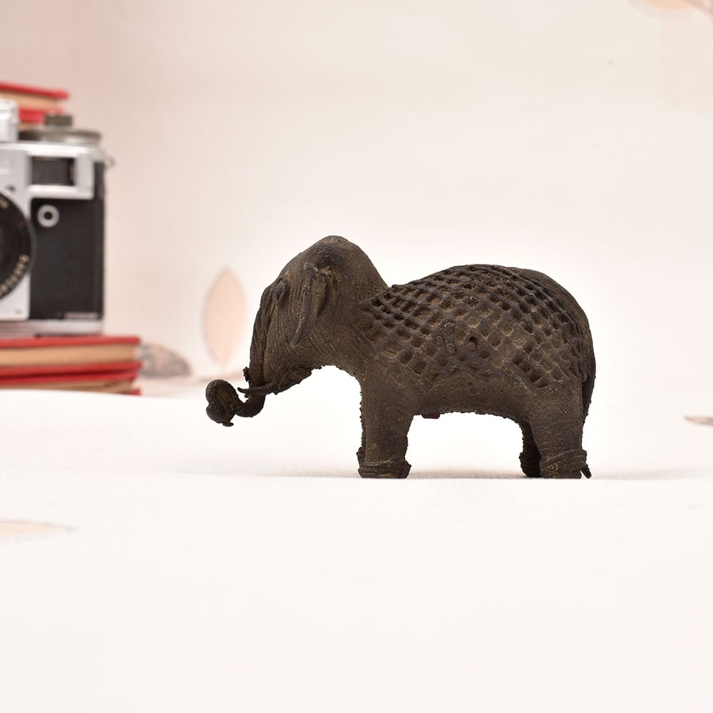 Behold the captivating presence of this vintage brass elephant statue, a true masterpiece of Tribal Art that will transport you to the heart of ancient civilizations. With its trunk raised high, this magnificent creature commands attention, radiating an air of strength, wisdom, and spiritual significance. This vintage brass elephant statue is more than just a decorative piece - it's a tangible connection to the rich cultural heritage of Tribal Art. Display it prominently in your home or office, and let its powerful energy inspire and captivate all who behold it. Whether you're a collector of fine art, a lover of exotic decor, or simply seeking to infuse your space with a touch of timeless elegance, this stunning statue is a must-have addition to your collection.