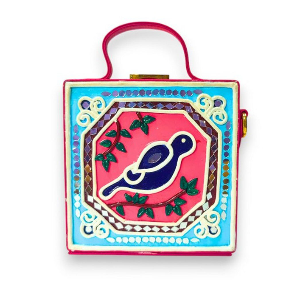 • Handcrafted Vegan Leather Bird Lippan Mirror Sling Bag