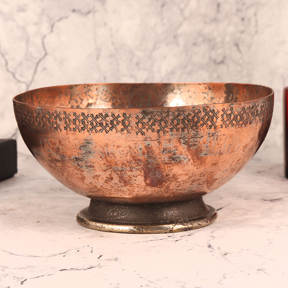 Discover the timeless allure of our Vintage Brass Bowl that is a masterpiece of craftsmanship and artistry. Handmade by professional artisans, this exquisite piece bears intricate engravings in an antique brown finish, echoing the rich heritage of Islamic artistry. Crafted from high-quality Brass, it embodies the elegance of a bygone era. Originally designed for serving food, this vintage treasure now finds its purpose in decoration. It's a stunning addition to any setting, be it your home, office, restaurant, hotel, shop, or cafe. Let its radiance grace your space, creating an atmosphere of nostalgia and sophistication. Perfect for vintage collectors, this bowl is a unique piece to display at exhibitions, showcasing its historical and artistic significance. It also makes an exceptional gift for your loved ones on special, festive, or auspicious occasions.
