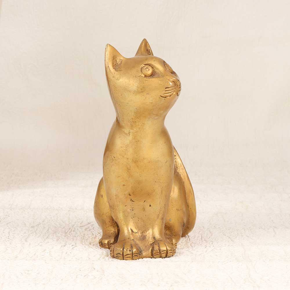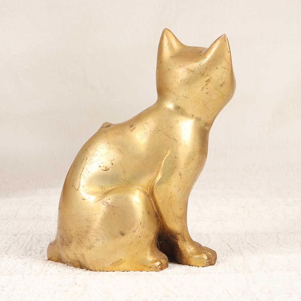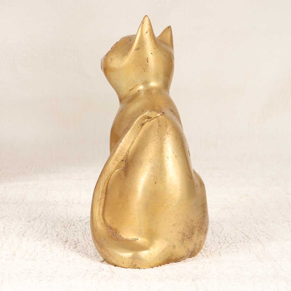 A timeless treasure for the feline fanatic, this vintage brass cat statue exudes elegance. This decorative work of art features a serene tabby cat with intricate detailing, perched upon a sturdy base. Bring home this vintage-inspired cat statue to add a touch of nostalgia to your space. The warm brass tones and familiar feline form make this statue a charming decorative accent. Place it on a shelf, tabletop, or bookcase to delight cat lovers and vintage decor enthusiasts. The artisanal quality and old-world styling give this brass cat statue appeal across generations. Ideal for cat parents, antique collectors, and anyone who appreciates decorative animal art. This conversation-starting piece will be cherished for years to come.
