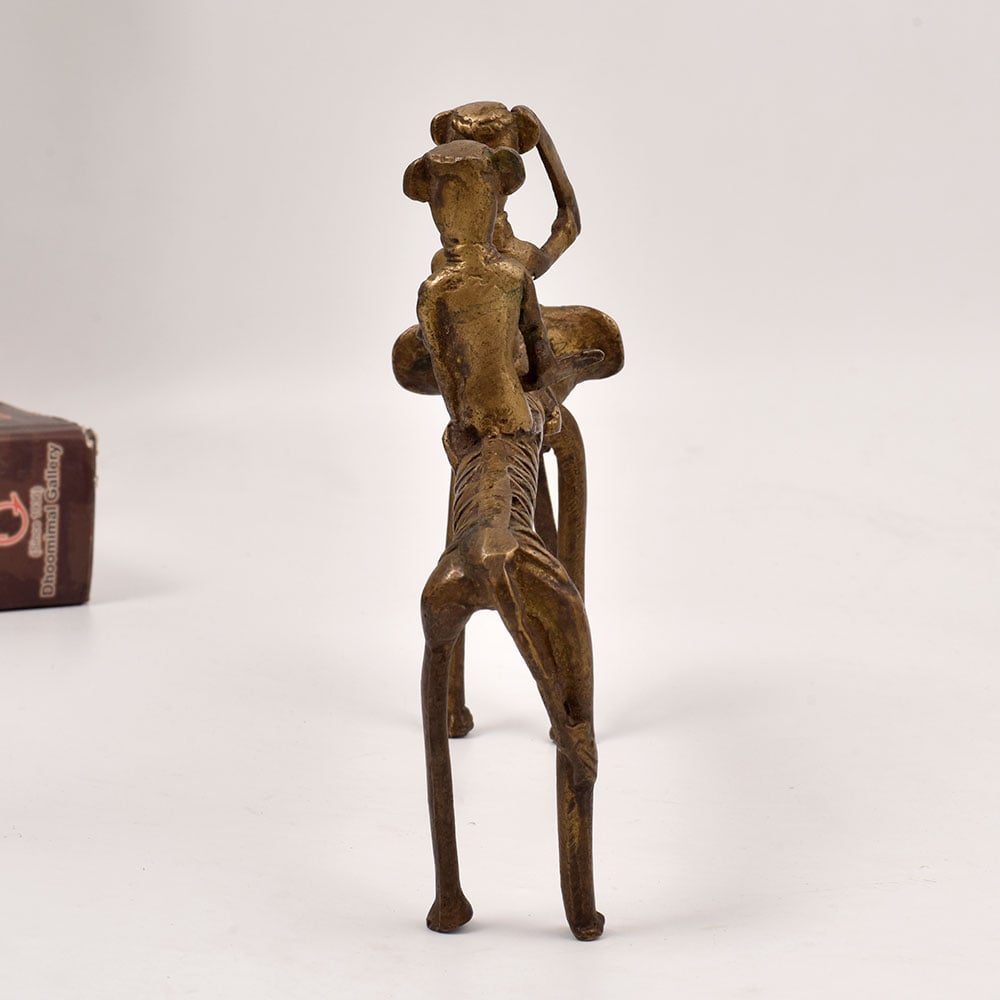 Commanding attention from every angle, this stunning vintage brass elephant figurine with two riders is a captivating work of tribal art that will transform any space. Crafted with meticulous attention to detail, this magnificent piece radiates an air of timeless elegance and cultural heritage. Infuse your home with the spirit of ancient traditions and the beauty of the natural world. This brass elephant duo makes a bold statement, commanding respect and admiration wherever displayed. Its impressive stature and captivating design will elevate your decor, sparking conversation and evoking a sense of wonder in all who behold it. Whether showcased in your living room, office, or meditation space, this stunning tribal art piece will transport you to far-off lands and cultures. Its powerful symbolism and exceptional craftsmanship make it a truly special addition to your collection - a treasured heirloom that will be passed down for generations.