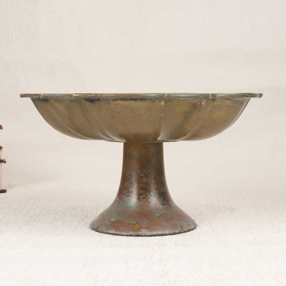 A Vintage Brass Fruit Stand with Stand which is an epitome of timeless elegance and craftsmanship. This stunning piece is adorned with an antique brown finish and is a testament to the artistry of highly skilled artisans in English Art. Meticulously handcrafted from high-quality brass, each detail reflects the dedication and precision put into its creation. This versatile fruit stand is not just a functional item but also a captivating decorative piece that effortlessly complements various settings. Its classic design allows it to seamlessly blend into the aesthetics of homes, offices, restaurants, hotels, or cafes, enhancing the ambiance with a touch of vintage charm. Perfect for those with an affinity for collecting vintage treasures, this brass fruit stand is a must-have addition. Placing it amidst your curated collection adds a sense of history and sophistication. Moreover, it serves as an ideal gift for your loved ones on special, festive, or auspicious occasions, encapsulating both sentiment and enduring beauty.
