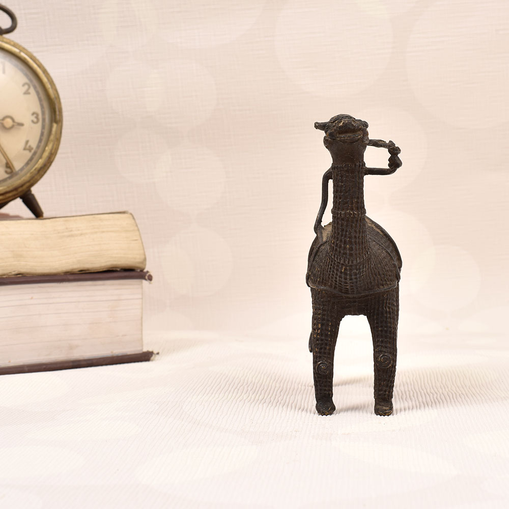 Discover the allure of ancient nomadic culture with this exquisite brass statue depicting a camel and its noble rider. This striking piece of Tribal Art will transport you to faraway desert landscapes, evoking a sense of timeless wonder in any space. This brass statue is more than just a decorative piece - it's a window into a captivating world of nomadic traditions and ancient craftsmanship. Display it in your living room, office, or entryway to inspire awe and ignite conversations about the beauty of global diversity. Whether you're a seasoned collector or simply seeking to elevate your décor, this camel and rider statue is a must-have addition that will elevate any space with its timeless elegance.