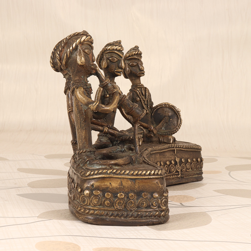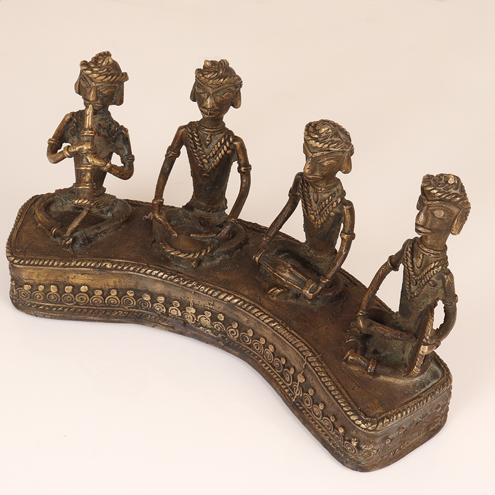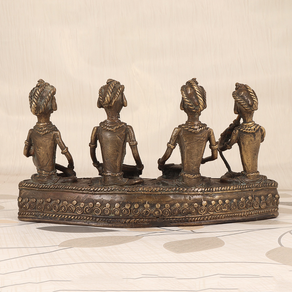 Elevate your home decor with the captivating Vintage Brass Tribal Art Four Figure - a mesmerizing display of Bastar Art that brings the vibrant pulse of traditional music to life. This exquisite piece features four intricately crafted figures, each masterfully sculpted to depict a musician playing a distinct instrument, from the soulful drum to the enchanting flute. Invite the captivating melodies of tribal music into your living space with this stunning Vintage Brass Tribal Art Four Figure. Crafted with meticulous attention to detail, this piece showcases the extraordinary talent and rich cultural traditions of Bastar's artisans. Display it proudly as a testament to the enduring power of authentic, handmade craftsmanship. Whether you're a lover of world art, a passionate collector, or simply seeking to infuse your home with a touch of global inspiration, this exquisite tribal figure set will elevate your space and captivate all who behold it. Bring the rhythmic heartbeat of tribal artistry into your life and experience the transformative power of this remarkable piece.