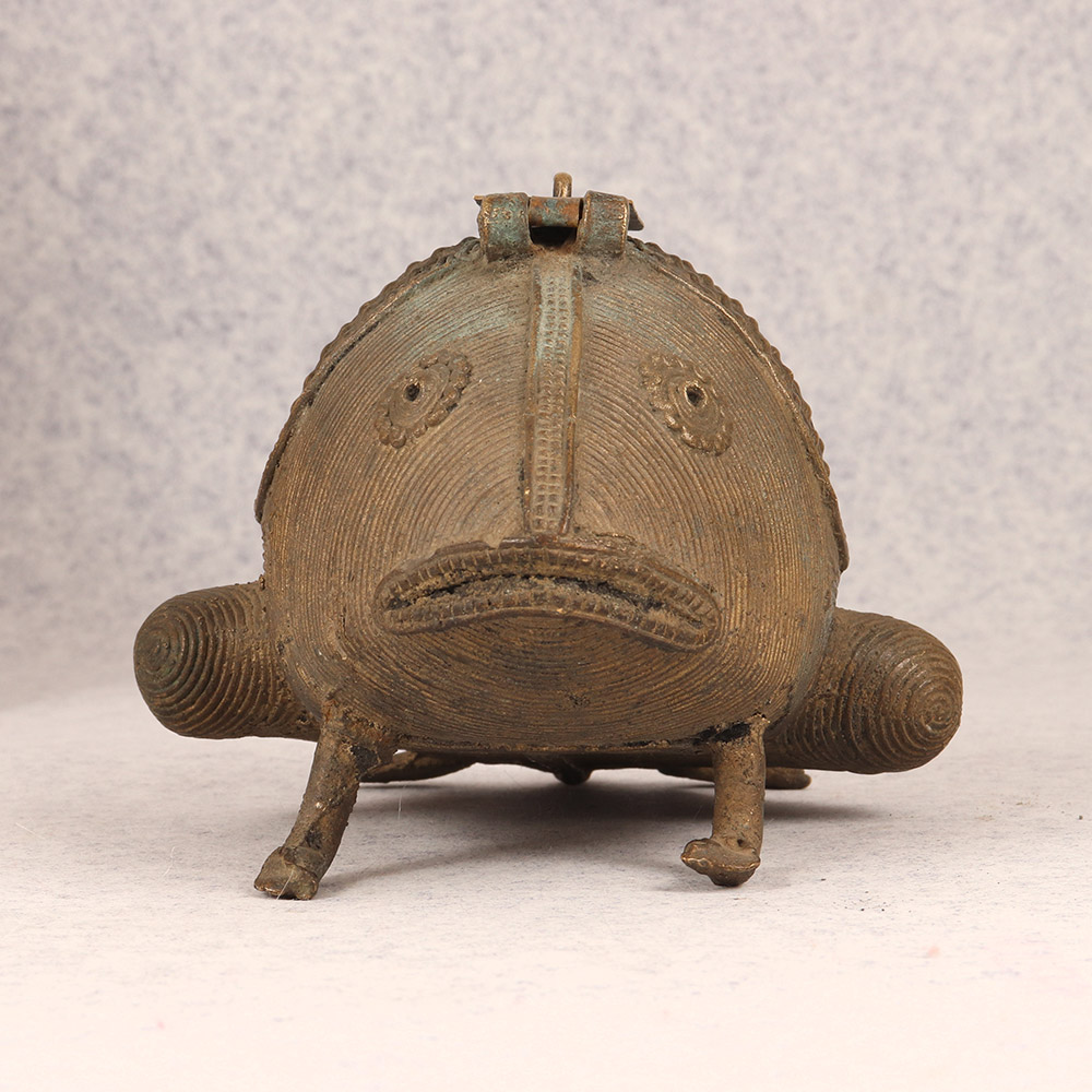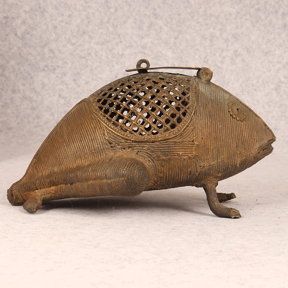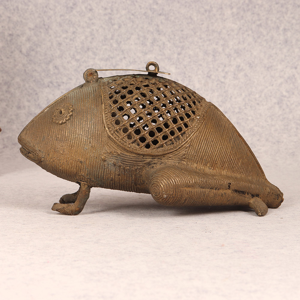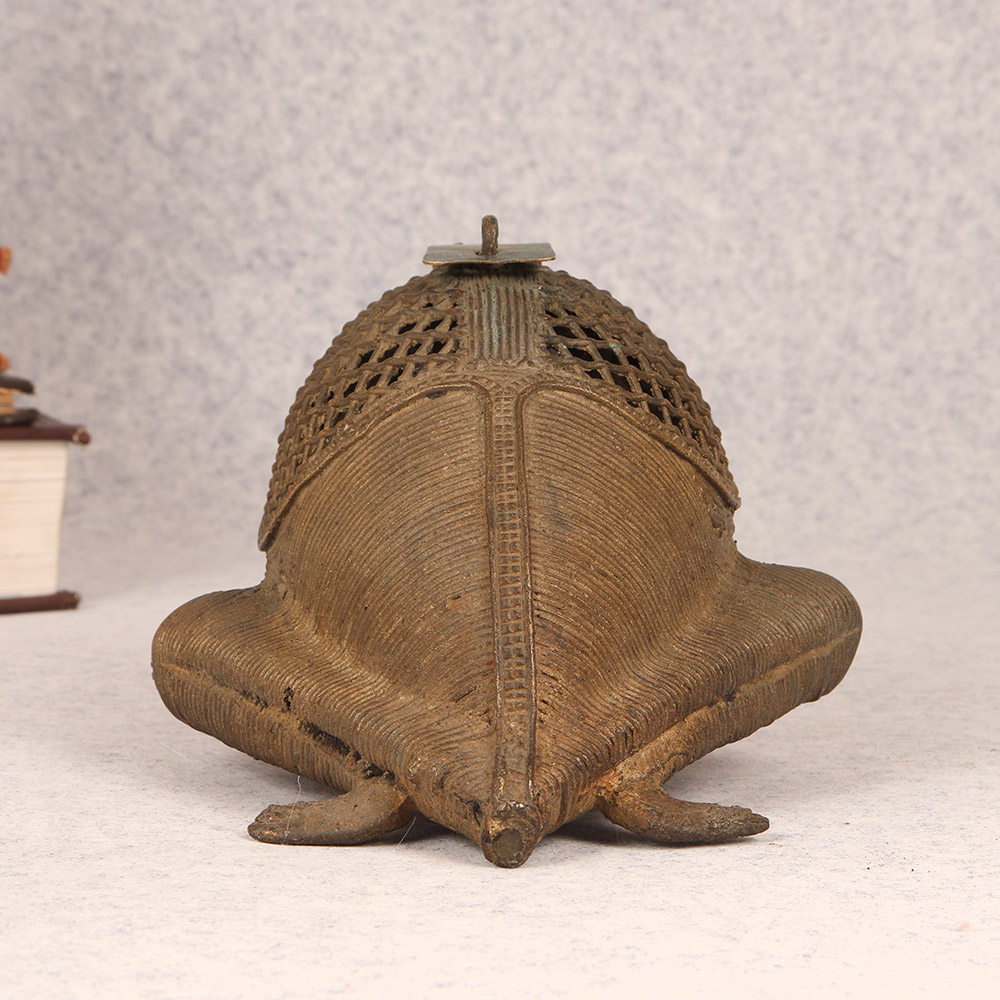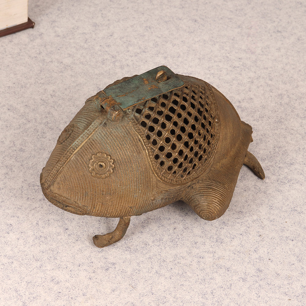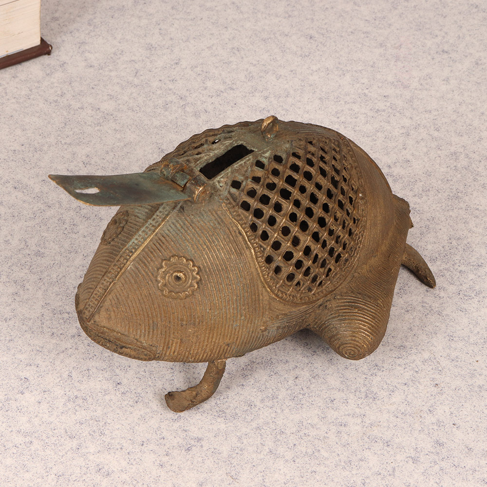 Bring a touch of whimsical charm to your home with this stunning Vintage Brass Frog. Crafted with intricate tribal art and delicate jali work, this frog is a true work of art that doubles as a functional storage piece. This vintage brass frog is more than just a pretty face - it's a functional piece that will elevate the style of any space. Display it on a shelf, side table, or windowsill to catch the light and cast mesmerizing shadows. Or use the hidden compartment to stash away jewelry, spare keys, or other small trinkets. Whether you're looking to add a touch of global flair to your home decor or seeking a unique gift for the design lover in your life, this brass frog is sure to delight. Its handcrafted quality and timeless aesthetic make it a piece that will be treasured for years to come. Embrace the beauty of artisanal craftsmanship and let this vintage frog bring a smile to your face every time you catch a glimpse of it.