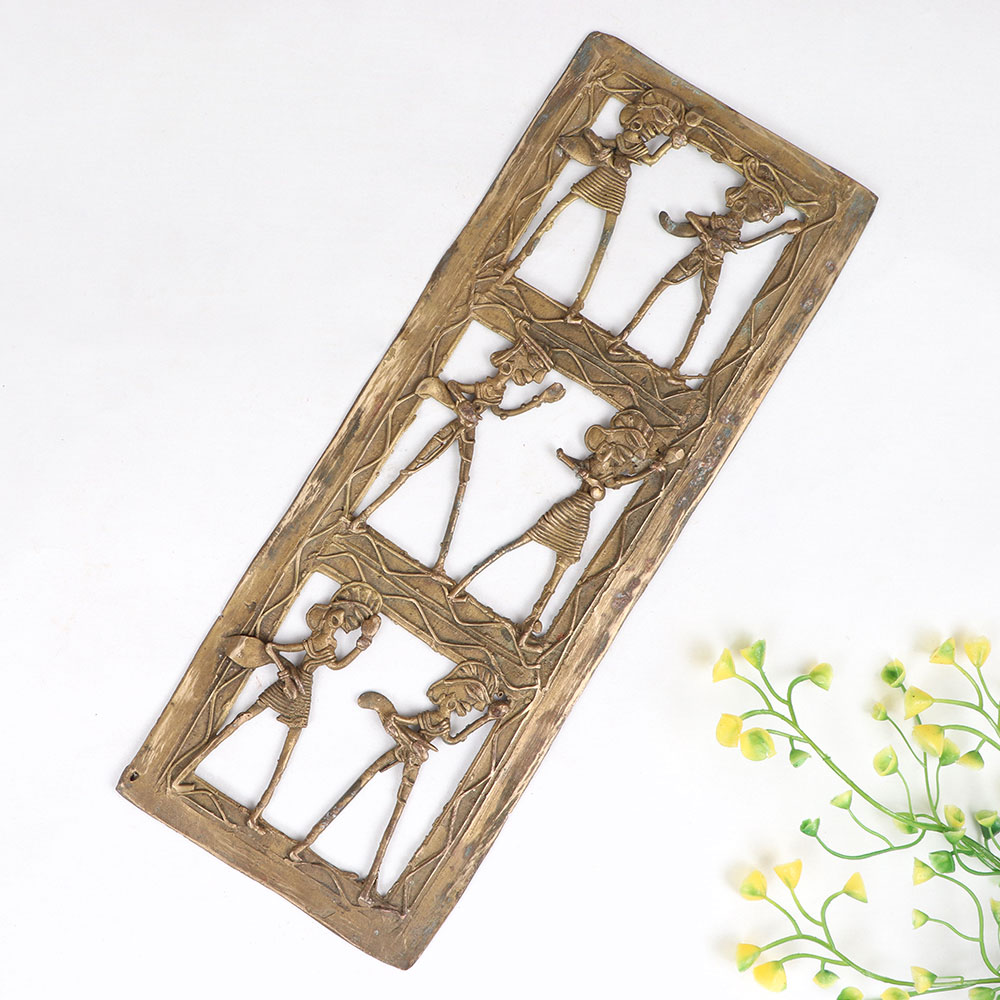Transport yourself to the heart of Indian tribal culture with this exquisite Vintage Brass Tribal Wall Art adorned with intricate jali work. Crafted by skilled Indian artisans, this masterpiece showcases six tribal figures engrossed in the joyous act of playing musical instruments. The use of high-quality brass not only lends a timeless elegance but also ensures durability. The antique brown finish adds a touch of nostalgia, creating a captivating piece that transcends time. Each detail is meticulously handcrafted, highlighting the artistry and precision of tribal craftsmanship. Versatile in its charm, this wall art is a perfect addition to your home, office, restaurant, hotel, or cafe, infusing spaces with cultural richness. Ideal for collectors of vintage treasures, this piece promises to be a cherished addition to any collection, speaking volumes about the heritage it represents. Its versatility extends to being a thoughtful gift for loved ones on special, festive, or auspicious occasions, making it a symbol of cultural appreciation and shared joy.