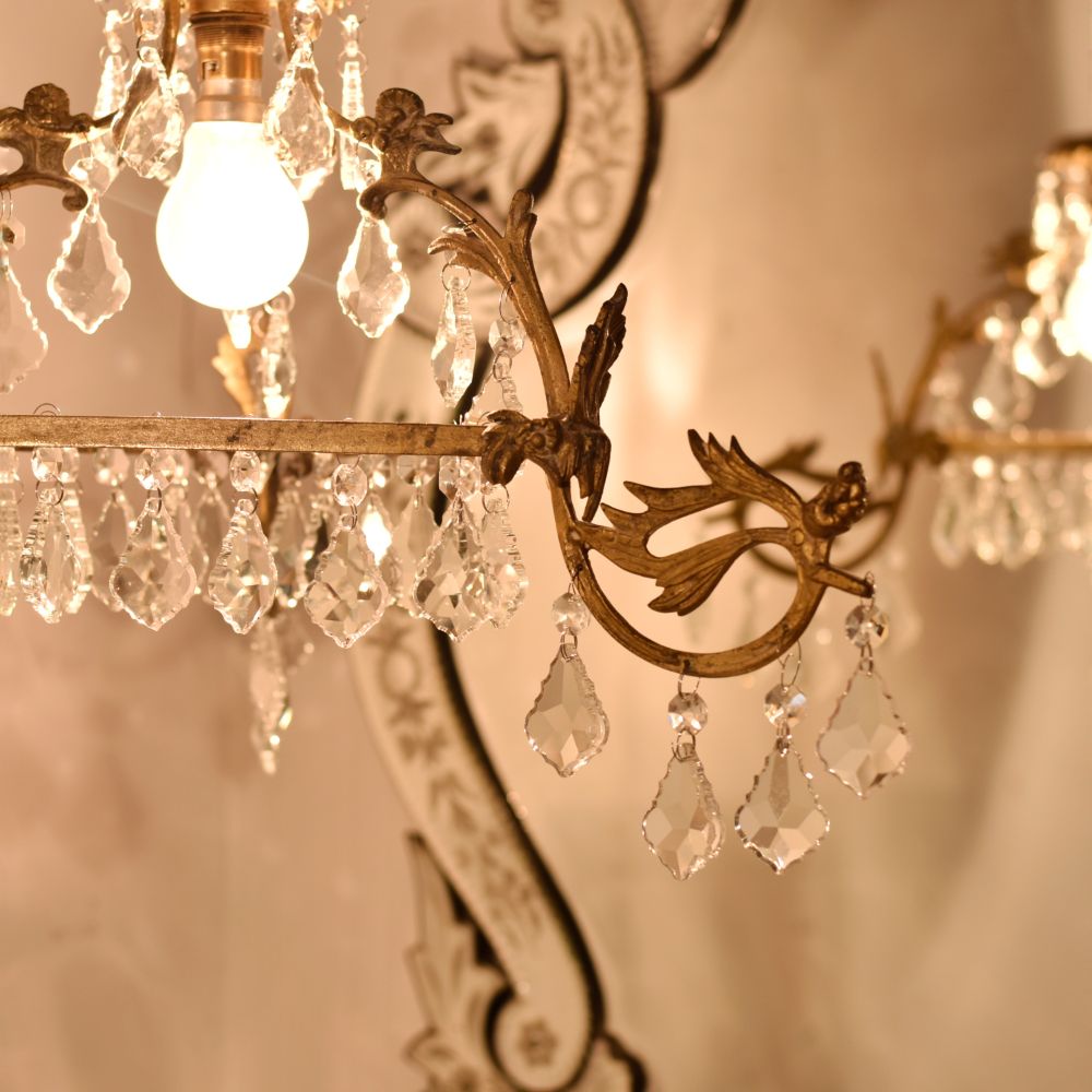 Handcrafted Vintage Design Brass Chandelier With 44 Clear Glass Maple Leaf