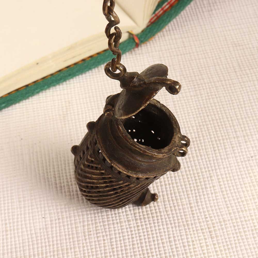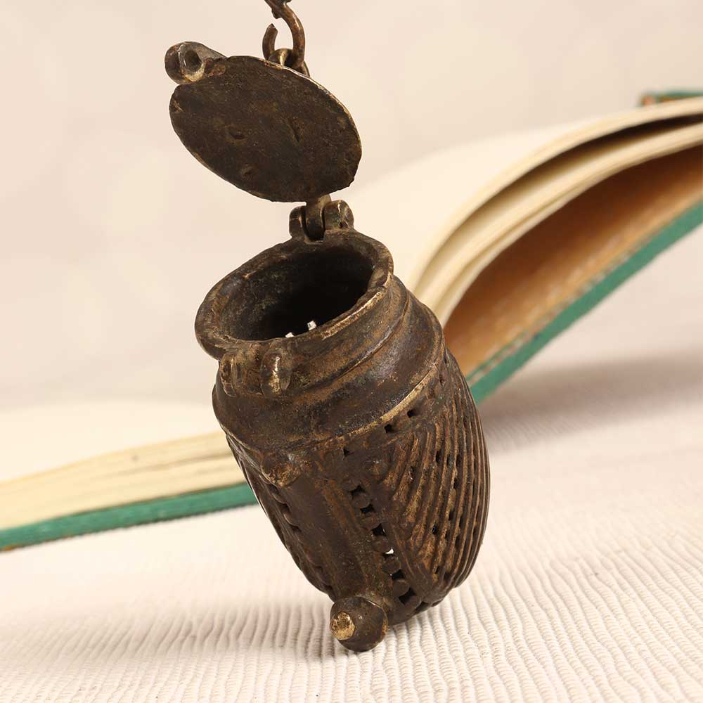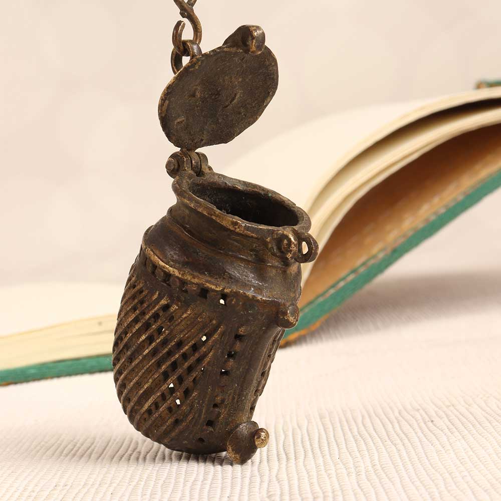 Bring the vibrancy of India into your home with this one-of-a-kind brass tribal mango shape box. Handcrafted by skilled artisans, intricate jali work patterns dance across the surface of this vintage-inspired piece. This striking box evokes the rich cultural heritage of India. Jali is an ancient technique that creates delicate, lacelike patterns across metals and stone. Tiny perforations form swirling shapes that allow light to filter through, creating visual interest. For those who appreciate global design and want to add an exotic accent to their home, this tribal mango box makes a special gift or cherished decor piece. Display on a coffee table, bookshelf or console to infuse your space with artistic flair. Give as a memorable housewarming or hostess gift.