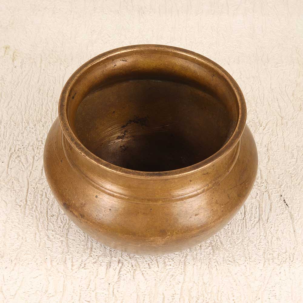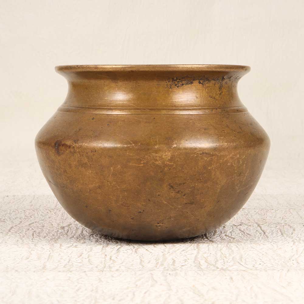 Rediscover the beauty of bygone eras with this gorgeous vintage brass pot from Gujarat. Perfect as a stylish and functional flower pot, this brass pot adds an antique charm to any space. Step back in time whenever you look at this lovely vintage brass pot. Its rich, warm glow and intricate traditional designs transport you to the bazaars of old world India. Displaying your plants in this brass pot lets you surround yourself with living beauty while appreciating the craftsmanship of the past. Give your home an instant antique upgrade with this vintage brass pot. Its versatility allows you to use it as a planter in any room that needs a touch of old world character and charm. Whether you're a collector of antiquities or just want to add a new focal point to your home, this brass pot is sure to draw the eye.