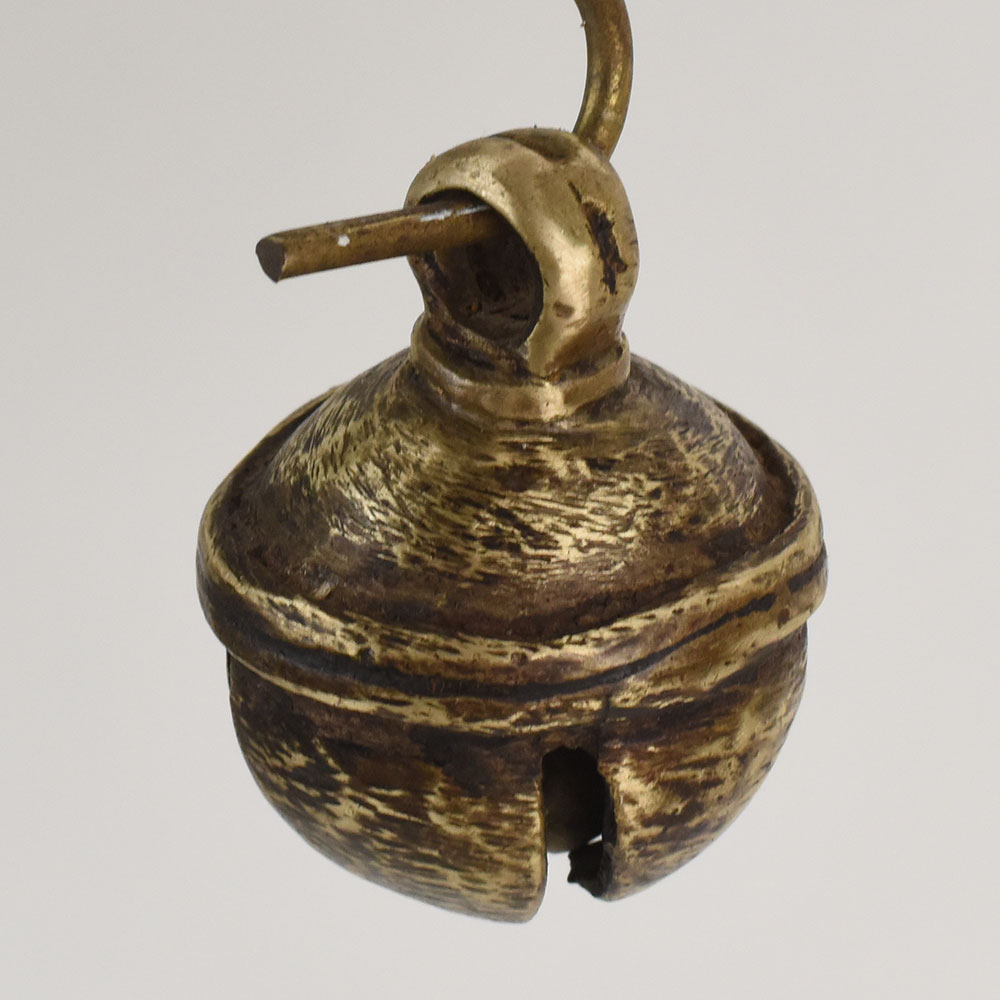 Bring authentic rural charm into your home with this Vintage Bell Metal Cow Bell Set of 6, traditionally handcrafted in Northern India. Each bell is made from solid bell metal, known for its rich golden patina and long-lasting durability. These rustic bells were originally used on cattle and livestock, creating a distinct melodic sound that echoed across farmlands. Today, they make stunning decorative accents for bohemian, farmhouse, or ethnic interiors. Every bell in this set of six features a beautifully aged finish, unique hand-hammered texture, and a slit design typical of regional Indian craftsmanship. Use them as wall hangings, festive dcor, artisanal craft components, or simply as collectible cultural artifacts. Their warm vintage appeal and handcrafted imperfections make each piece truly one-of-a-kind.