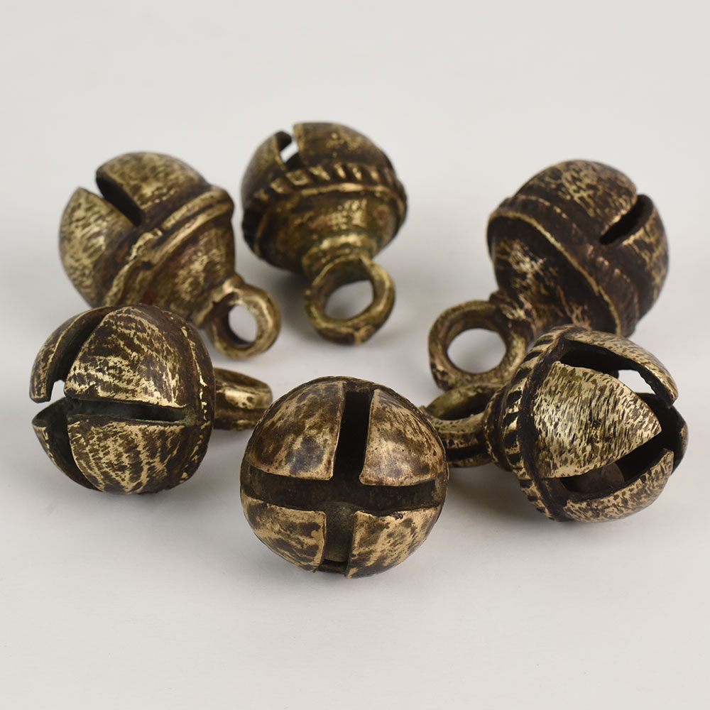 - Set of 6 authentic vintage bell metal cow bells from Northern India
