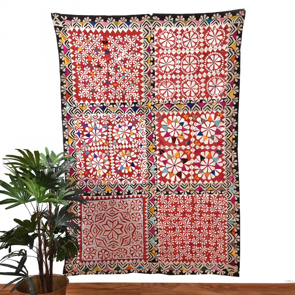 Applique handcrafted vintage wall hangings, also known as Chakla, are a traditional style of textile art that originated in Gujarat, India. Cutting out geometric patterns, animals, or floral motifs from brightly coloured fabrics and sewing them onto a plain backdrop cloth is used for this technique. The end product is an eye-catching piece of wall art that adds colour and texture to any room. The Applique-Making Procedure Various processes are involved in making a handmade wall hanging. The design is first scribbled onto the plain backdrop cloth. The colourful fabric is then cut into the appropriate shapes and proportions. These shapes are then pinned onto the backdrop cloth and arranged. The shapes' edges are then turned under and sewn onto the backdrop cloth with a needle and thread. Lastly, backing fabric and a hanging mechanism complete the item. Chaklas are available in various forms and sizes, from little squares to enormous rectangles. They are frequently used to decorate the walls of homes and temples, as well as tablecloths and bedspreads. Chaklas are often a decorative feature in traditional Indian households, where they are placed on the wall or utilized as tablecloths on important occasions. Chaklas are produced in various brilliant colours and patterns that reflect India's rich cultural past. Traditional Indian themes, such as peacocks, elephants, or flowers, are frequently included in the designs. These themes have ancient roots in Indian mythology and tradition and are considered auspicious emblems of wealth and good fortune. One of the advantages of an Applique Chakla, a handmade wall hanging, is a sustainable art form. Because the textiles used in Chakla are frequently leftovers or remnants from previous textile creations, no new materials are required. Chaklas are handcrafted, which helps local workers and maintains traditional craft processes.