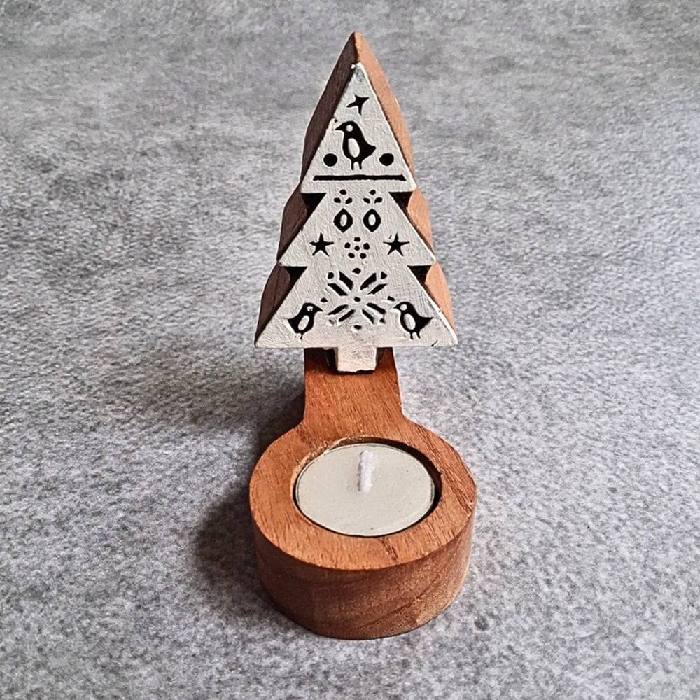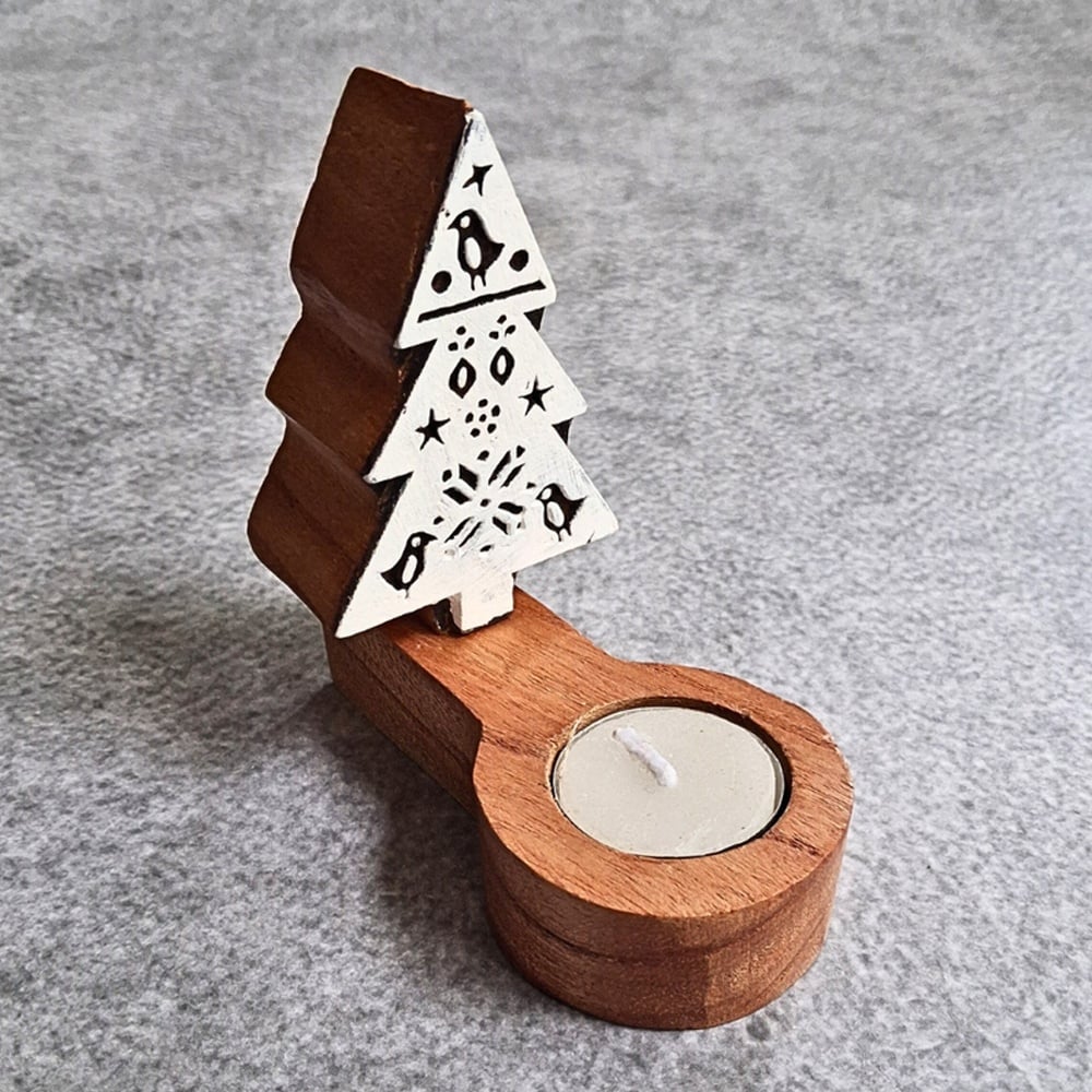 This handcrafted wooden Christmas tree T light set of 5 combines festive design with warm ambient lighting. Each piece features a carved wooden tree silhouette with a T light candle, creating a cozy and decorative glow perfect for seasonal and everyday use.