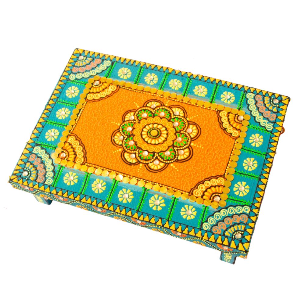 Add a Touch of Tradition to Your Pooja Space! This handcrafted wooden Chaurang/Bajot/Chowki is designed to bring purity and elegance to your home. Made from premium-quality wood, it features minute and detailed hand-painted designs in vibrant colors, making it a beautiful and functional addition to your pooja decor. An essential piece for all your festive and spiritual occasions!