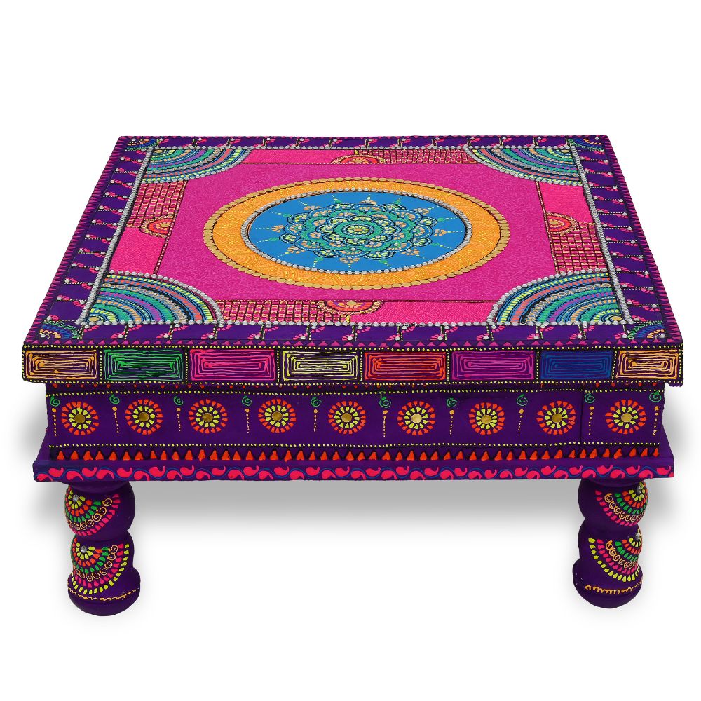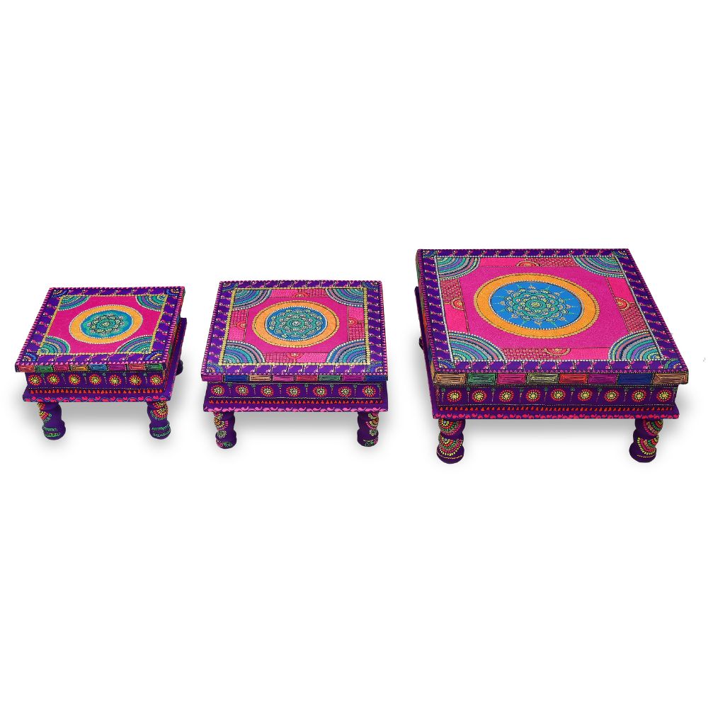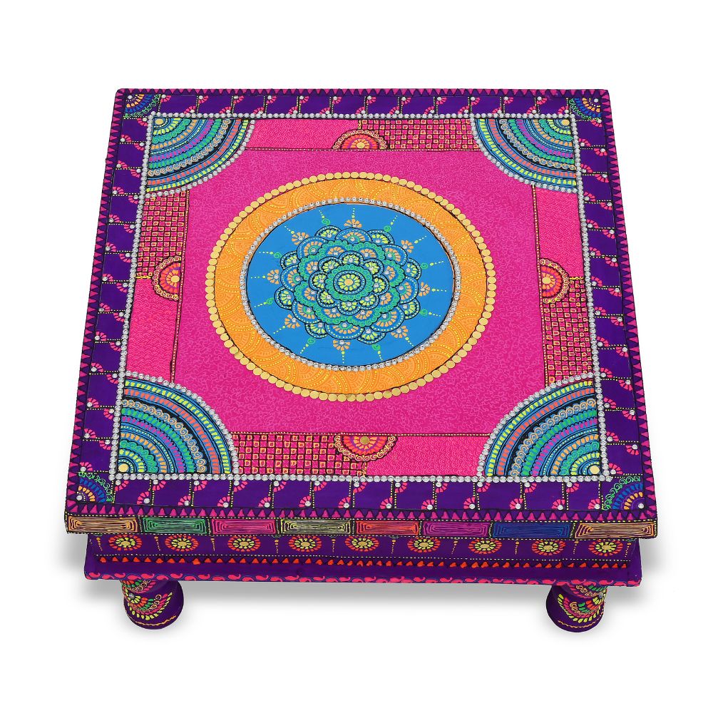 Handicraft Wooden Chourang Pooja Chowki in Purple and Pink