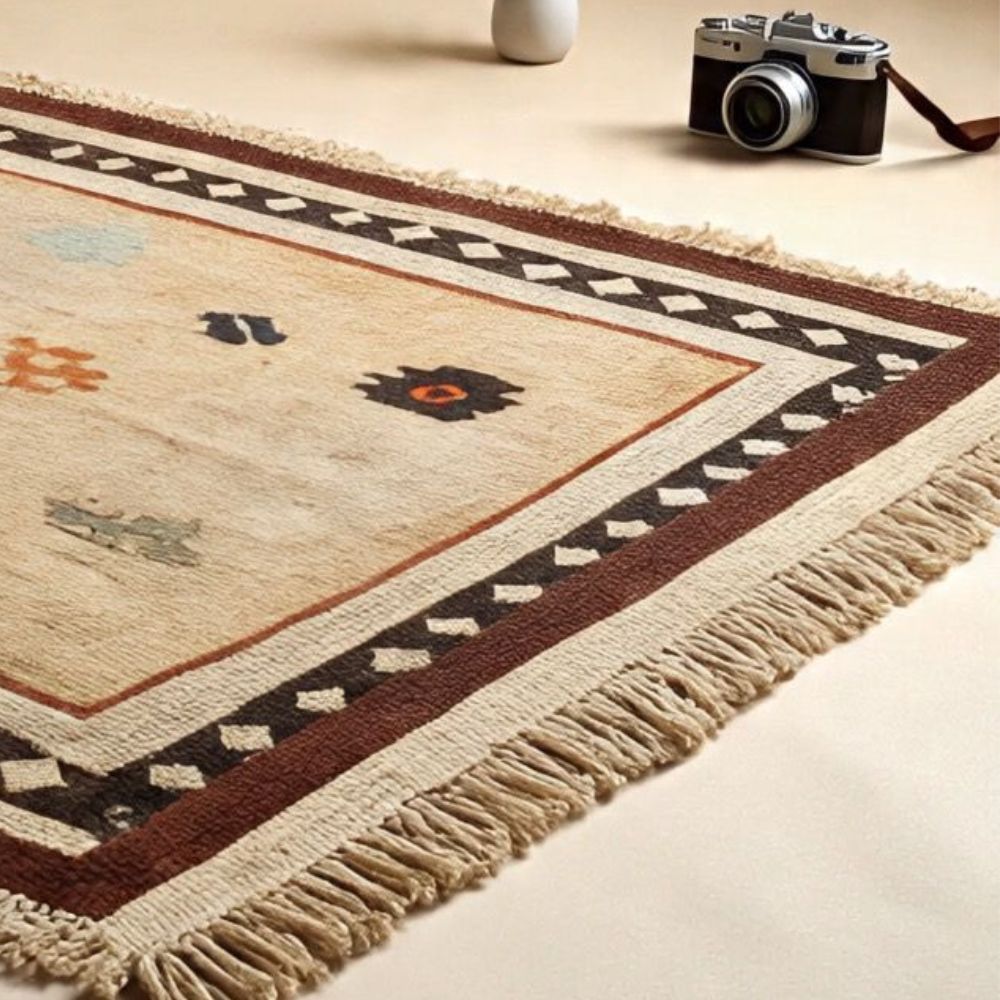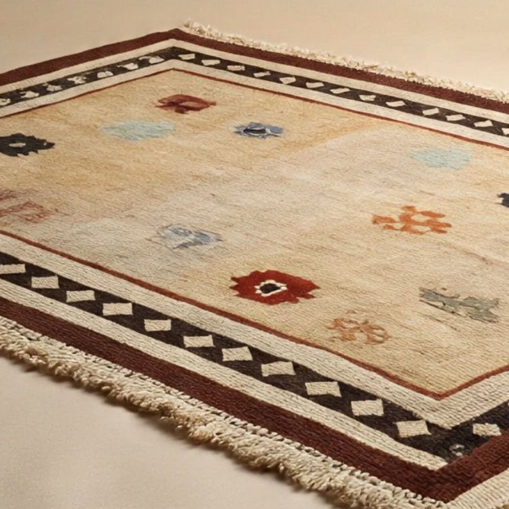 Boho Border Cream Rug is lovingly made from wool with multicolor hues, offering a artistic motif that suits a range of décor styles and personalities. Packed & quality-checked by Indianshelf.