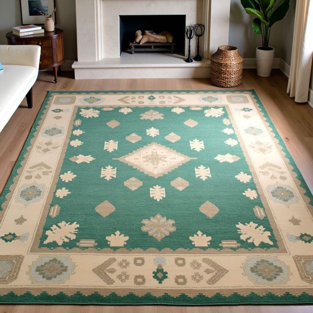 Featuring a soothing green base with ivory and beige tribal-geometric motifs, this rug perfectly balances heritage artistry with a modern aesthetic. Key Features Hand-Knotted Masterpiece Each knot is tied by hand, ensuring durability, authenticity, and fine detailing. Premium Wool Made with 100% natural wool, offering a soft, warm, and long-lasting texture. Unique Geometric Pattern Traditional motifs in cream and beige create a striking contrast on the calming green background. Versatile Use Ideal for living rooms, bedrooms, or office spaces, adding warmth and style to any dcor. One-of-a-Kind Each rug is uniquely handcrafted, making it a piece of art for your floor. Available Sizes: Multiple standard and custom sizes available (please select from options or message for custom orders). Care Instructions Vacuum regularly to maintain freshness. Spot clean with mild detergent and cold water. Professional cleaning recommended for longevity. This rug isnt just a floor coveringits a work of art designed to bring charm, comfort, and sophistication to your space. As it Appears Pack of One Piece.