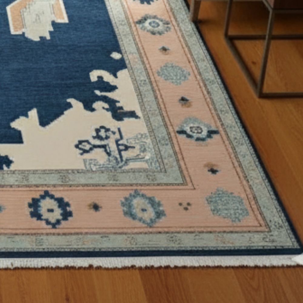 Designed with a geometric pattern in navy blue and soft peach tones, this rug blends contemporary aesthetics with the authenticity of traditional weaving. Each knot is tied by hand, reflecting the artistry of skilled artisans and ensuring that every rug is unique, durable, and luxurious. Rotate periodically to ensure even wear. Professional rug cleaning recommended when needed. Why Choose Handmade? Unlike machine-made rugs, each hand-knotted rug is one-of-a-kind, crafted with precision and designed to last for generations. As it Appears Pack of One Piece.