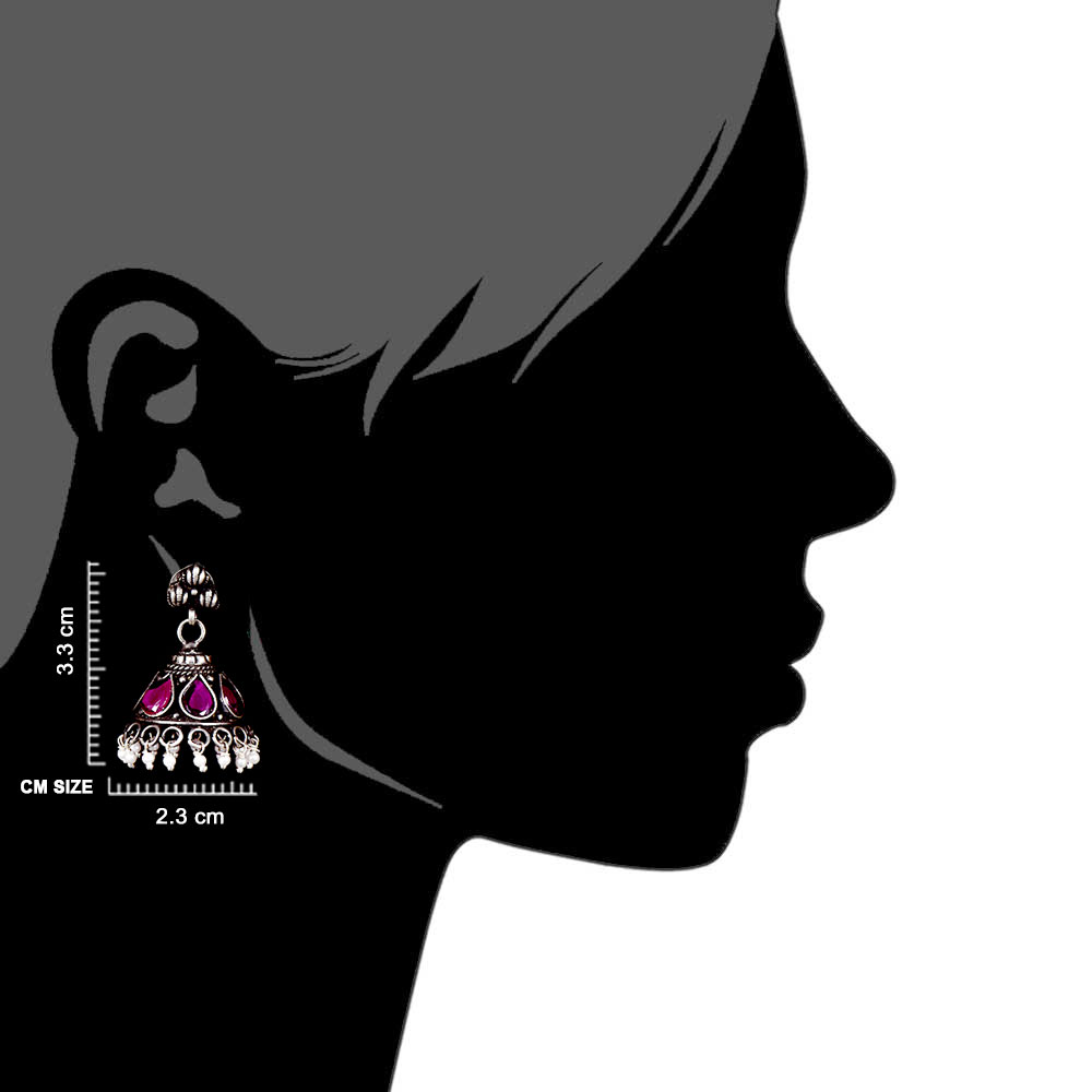 Handmade 92.5 Steling Siver Earrings Ametyst Stone Jhumki With Pearl Beads