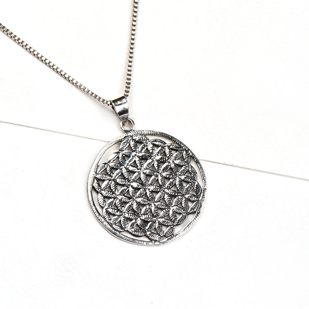 Full flowers and petals engraved in a round 92.5 Sterling Silver Pendant handmade by skilled artisans of India . Gift it on birthdays, anniversaries, new year eve , thanks giving , graduation ceremony.