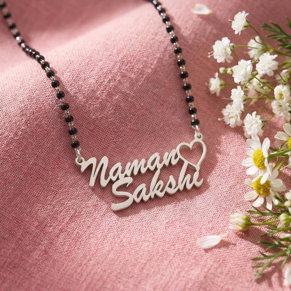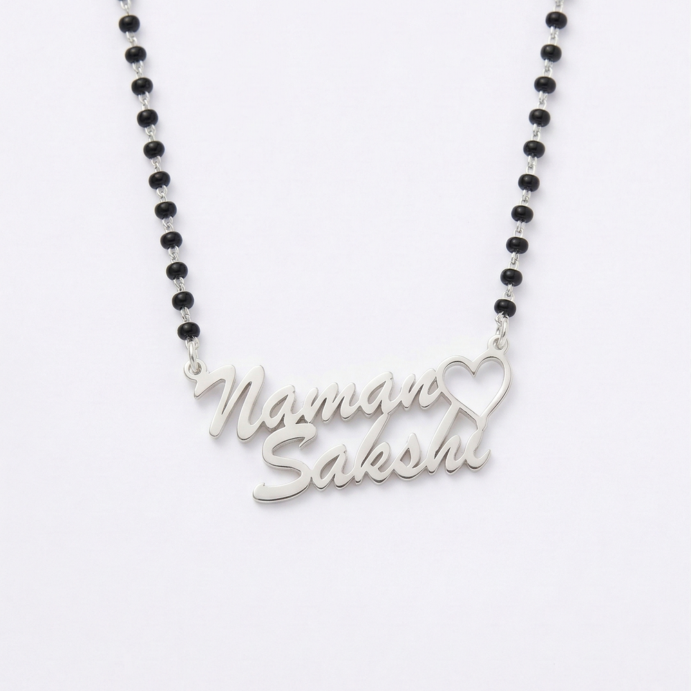 • Handmade 925 Sterling Silver Couple Named Naman & Sakshi Mangalsutra Necklace