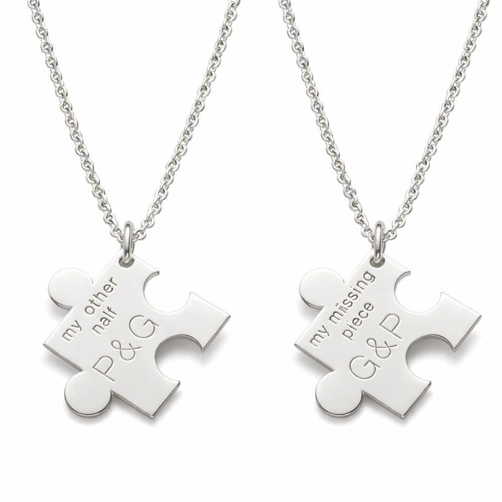 Handmade 925 Sterling Silver Puzzle Couple Pendant Necklace
