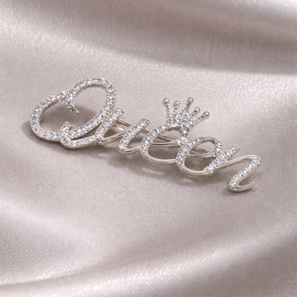 Handmade 925 Sterling Silver Queen Name Brooch Pin