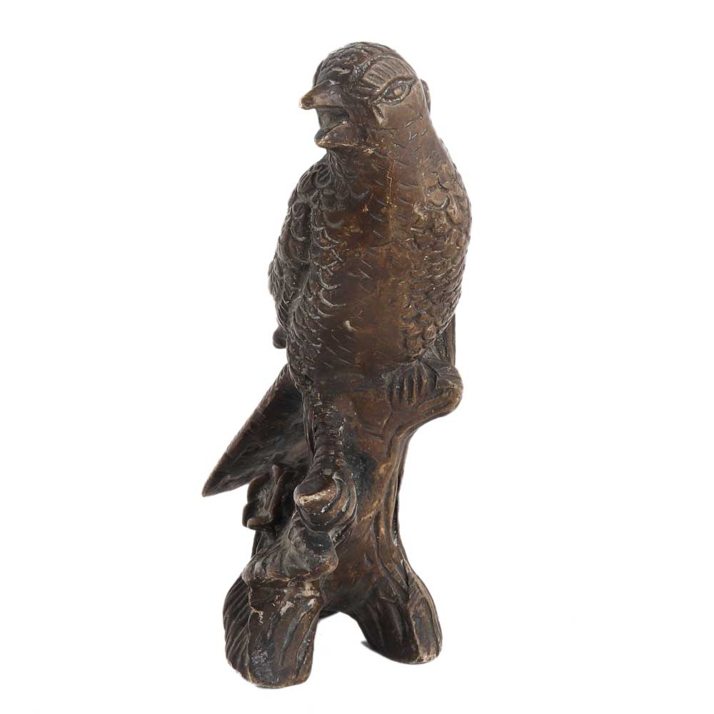 This handmade brass bird sitting on a branch with intricate carving makes it a great piece of valuable collection, a valuable personal alter or a very good present.