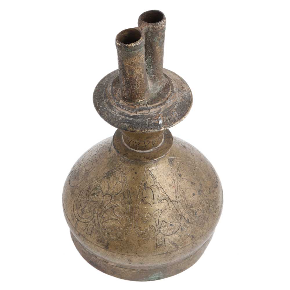 • Handmade Antique Brass Dual Funnel Hookah Base