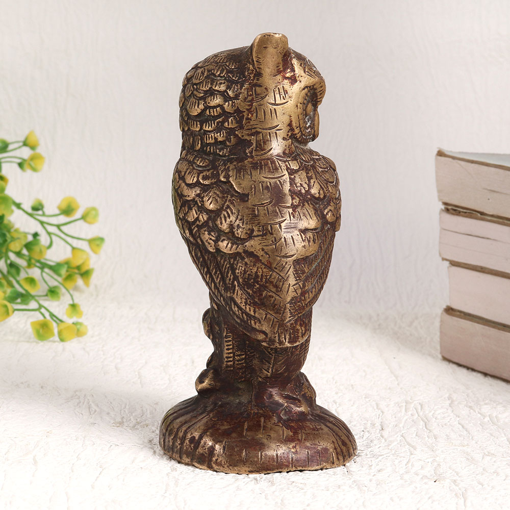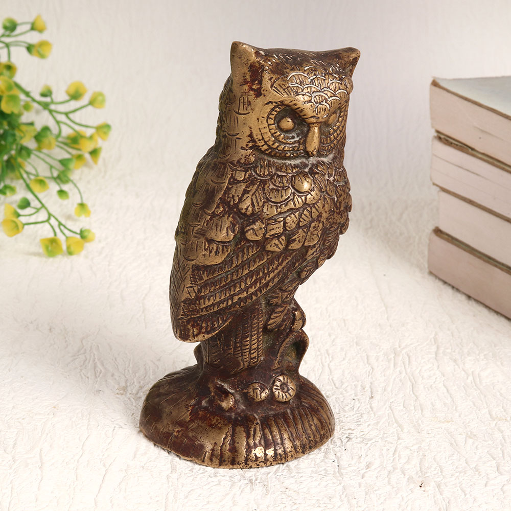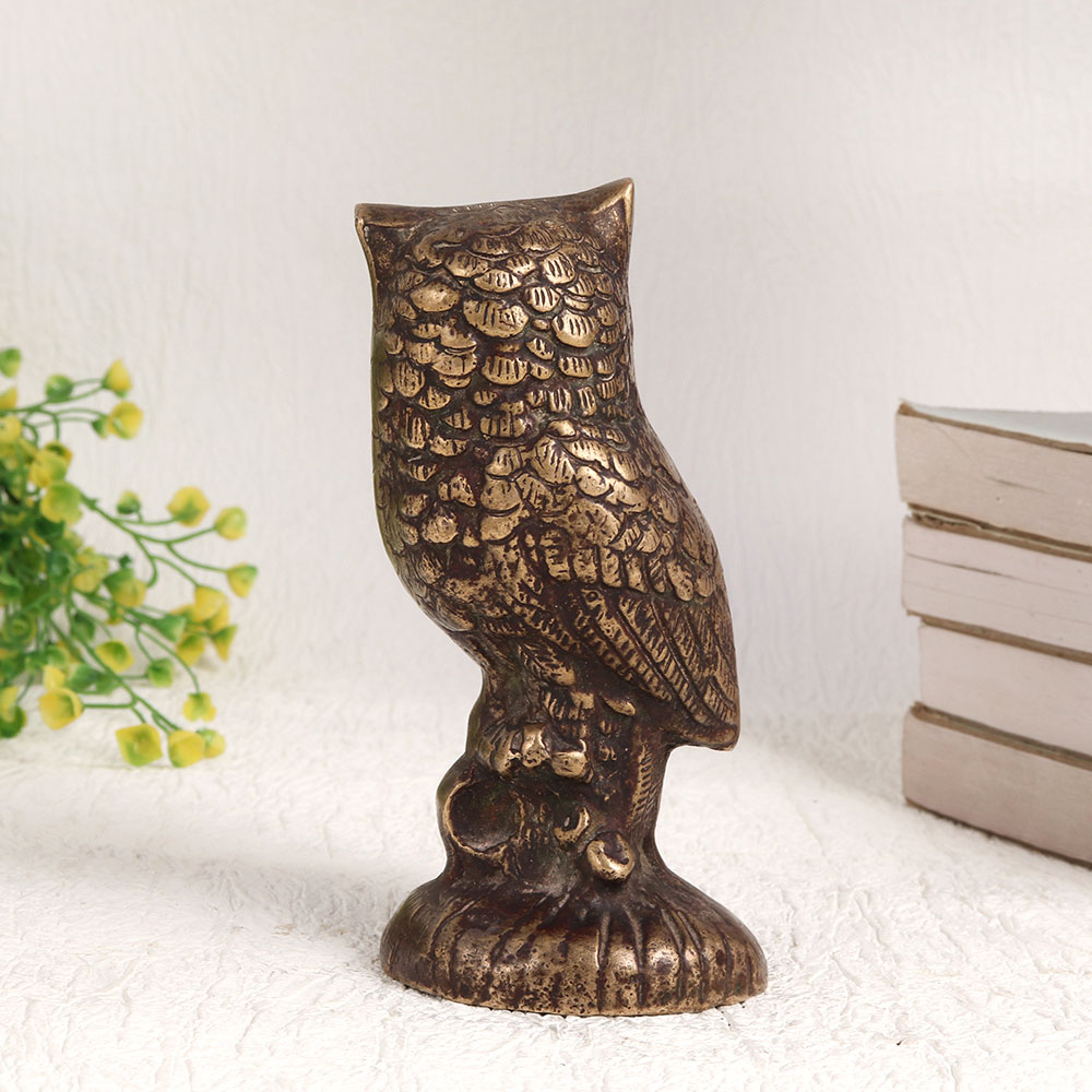 Buy a Brass Owl Statue online which is a stunning piece of artistry that embodies the rich heritage of Indian craftsmanship. Meticulously handcrafted by highly skilled Indian artisans, this masterpiece showcases their unparalleled expertise in working with high-quality brass. The statue boasts an antique brown finish that lends it an aura of timeless elegance. Standing as a symbol of wisdom and grace, this Brass Owl Statue is a versatile addition to any setting. Whether adorning your home, office, restaurant, hotel, cafe, or shop, it exudes an aura of sophistication and charm. It effortlessly merges with various decor styles, making it a versatile and captivating decoration piece. This exquisite owl statue is not just a decorative item, it's also a collector's delight. Its intricate design and vintage appeal make it a valuable addition to your vintage collection or a captivating exhibit piece at special events. Furthermore, this Brass Owl Statue makes for a thoughtful and meaningful gift for your loved ones on special, festive, or auspicious occasions.